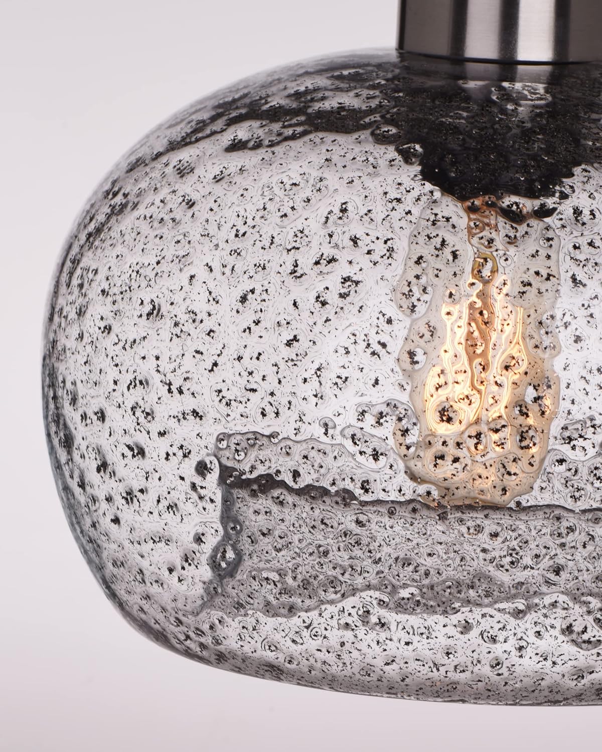 CASAMOTION Pendant Lighting Handblown Glass Drop Ceiling Lights, Modern Rustic Hanging Light Clear Seeded Glass with Black Sand Powder, Brushed Nickel Finish 8.7 Inch Diameter