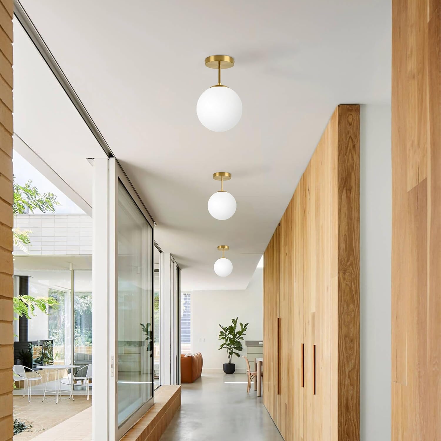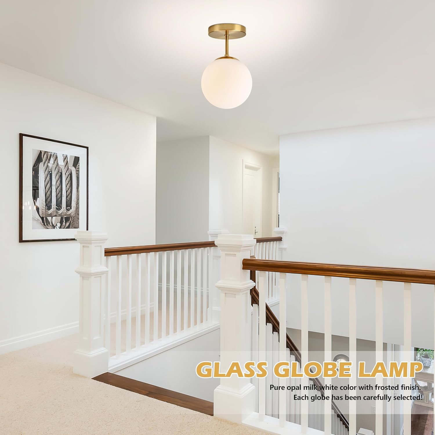Gold Globe Semi Flush Mount Ceiling Light,Mid Century Modern Light Fixture Ceiling,Globe Ceiling Light for Hallway Living Room Kitchen Bedroom Storage Schoolhouse Laundry(Bulb Incl.)