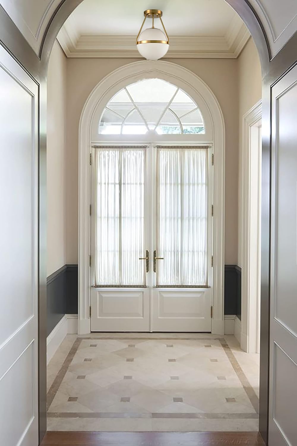 - ππ πππ£π:Semi flush ceiling light with globe milk glass in brass finish