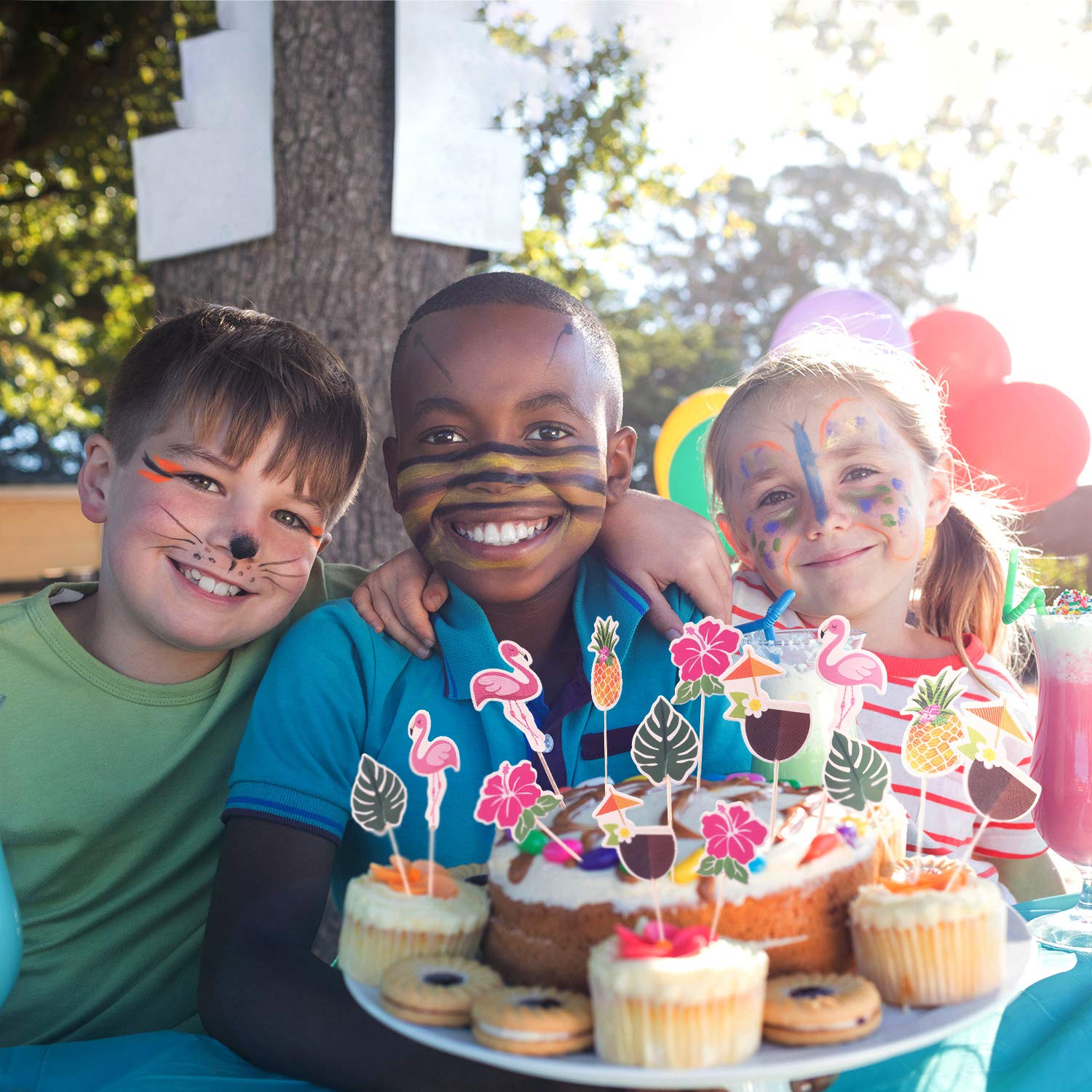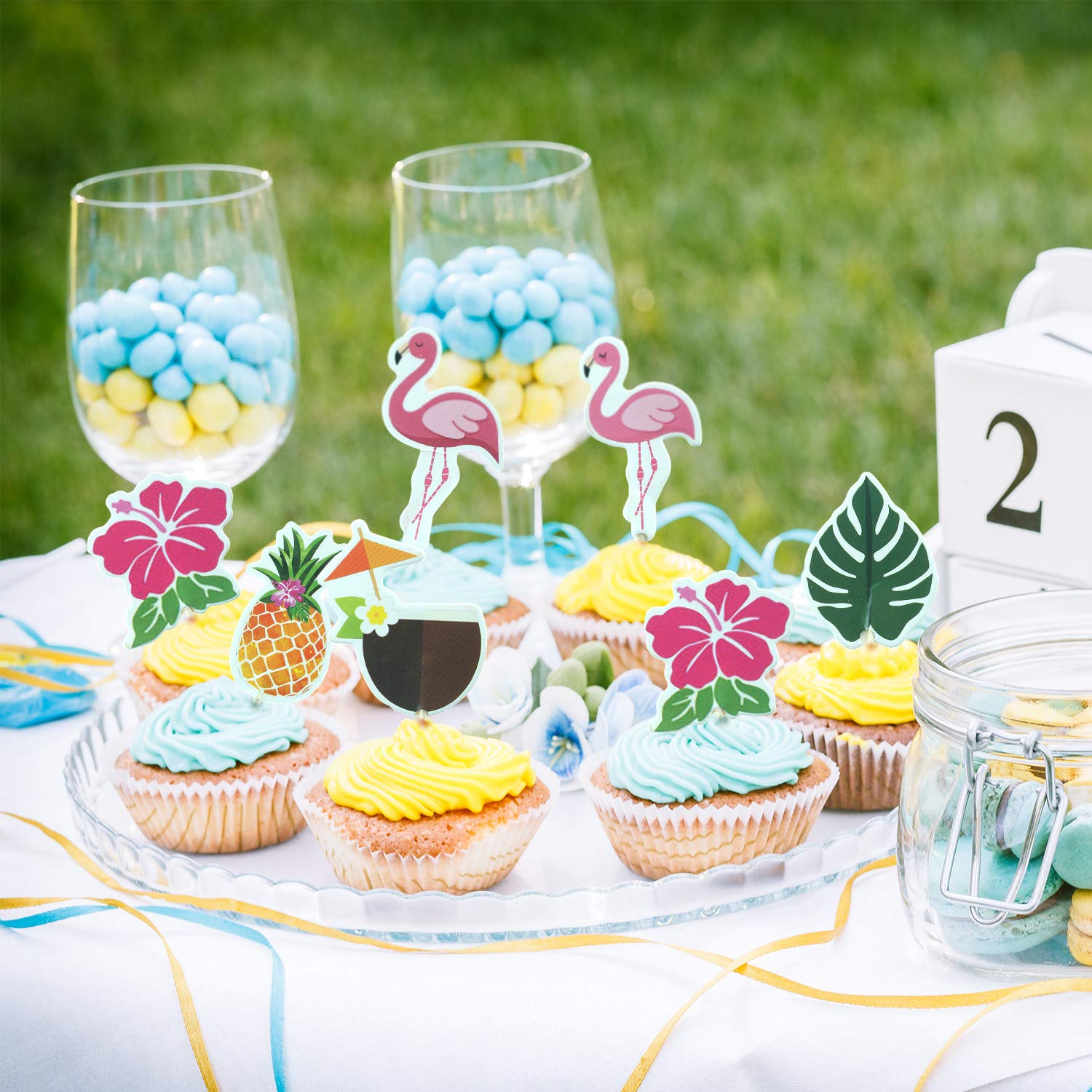 Luau Cupcake Toppers Tropical?Cake Decorations Hawaiian Toothpicks Sticks with Flamingo Pineapple Palm Leaves Shape Picks for Summer Beach Theme Party Favors Supplies, 6 Styles (144)