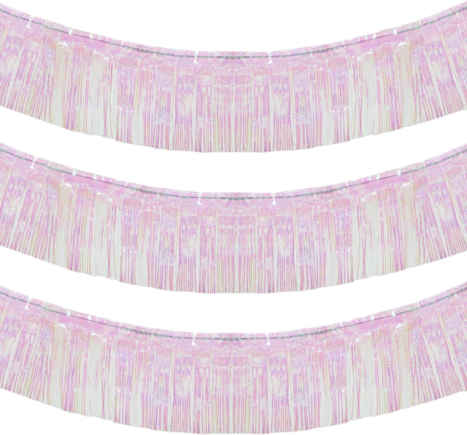 10 Feet by 15 Inch Iridescent White Foil Fringe Garland - Pack of 3 | Metallic Tinsel Banner | Ideal for Parade Floats, Bridal Shower, Wedding, Birthday, Christmas | Wall Hanging Drapes (3)
