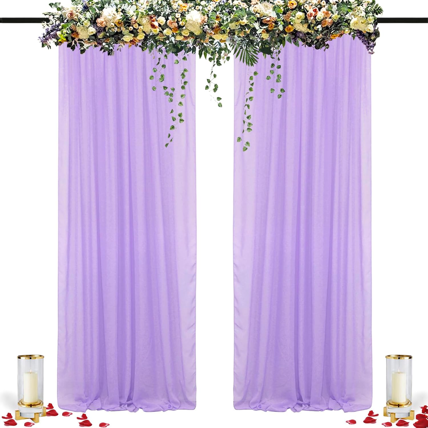 - β SHEER CHIFFON CURTAINS :Includes 2 Panels Width 29'' by 120'' Long chiffon backdrop curtain Lavender Sheer Curtains Wedding Chiffon Backdrop.