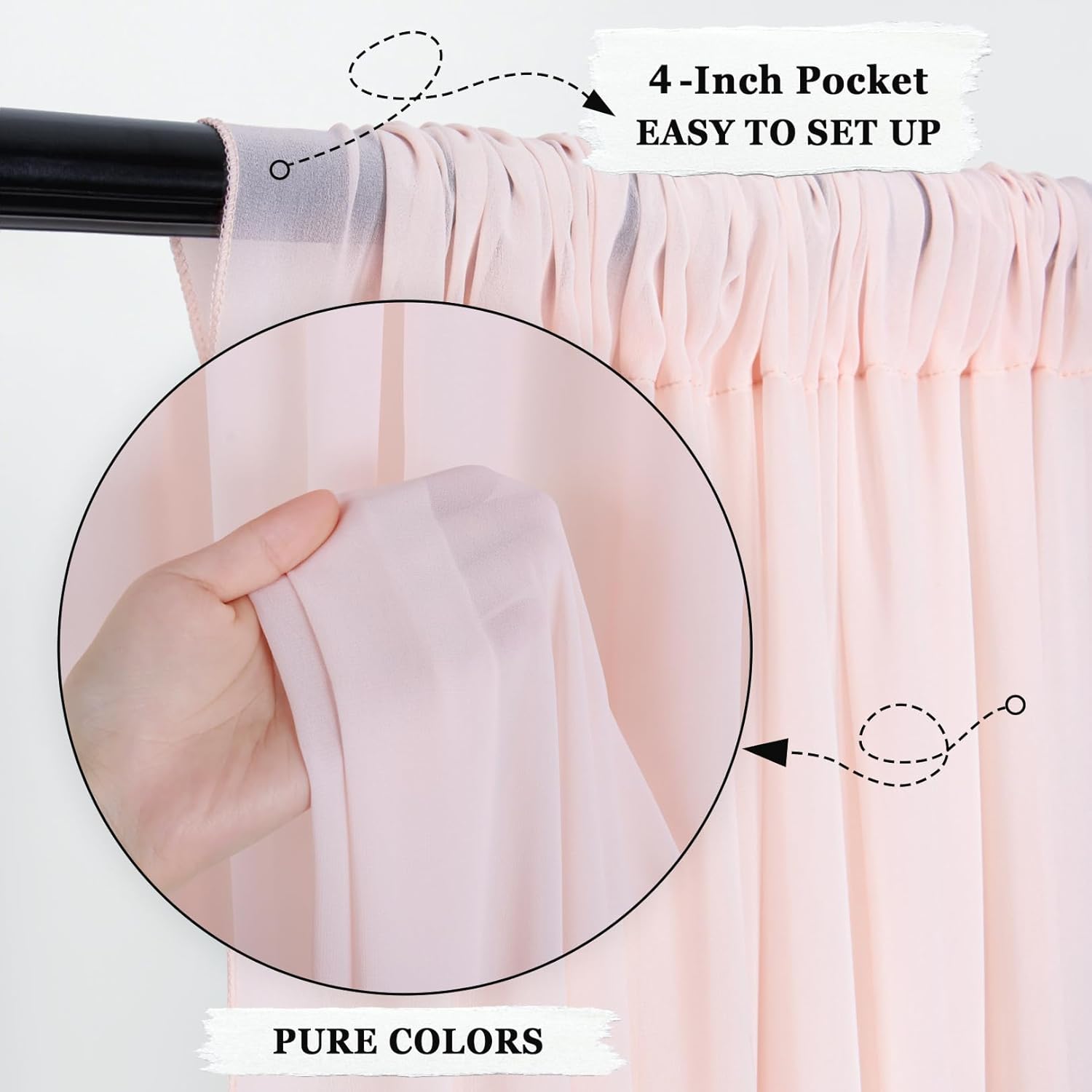 - ā SHEER CHIFFON CURTAINS :Includes 2 Panels Width 29'' by 96'' Long chiffon backdrop curtain Peach Sheer Curtains For Wedding Photography Backdrop.