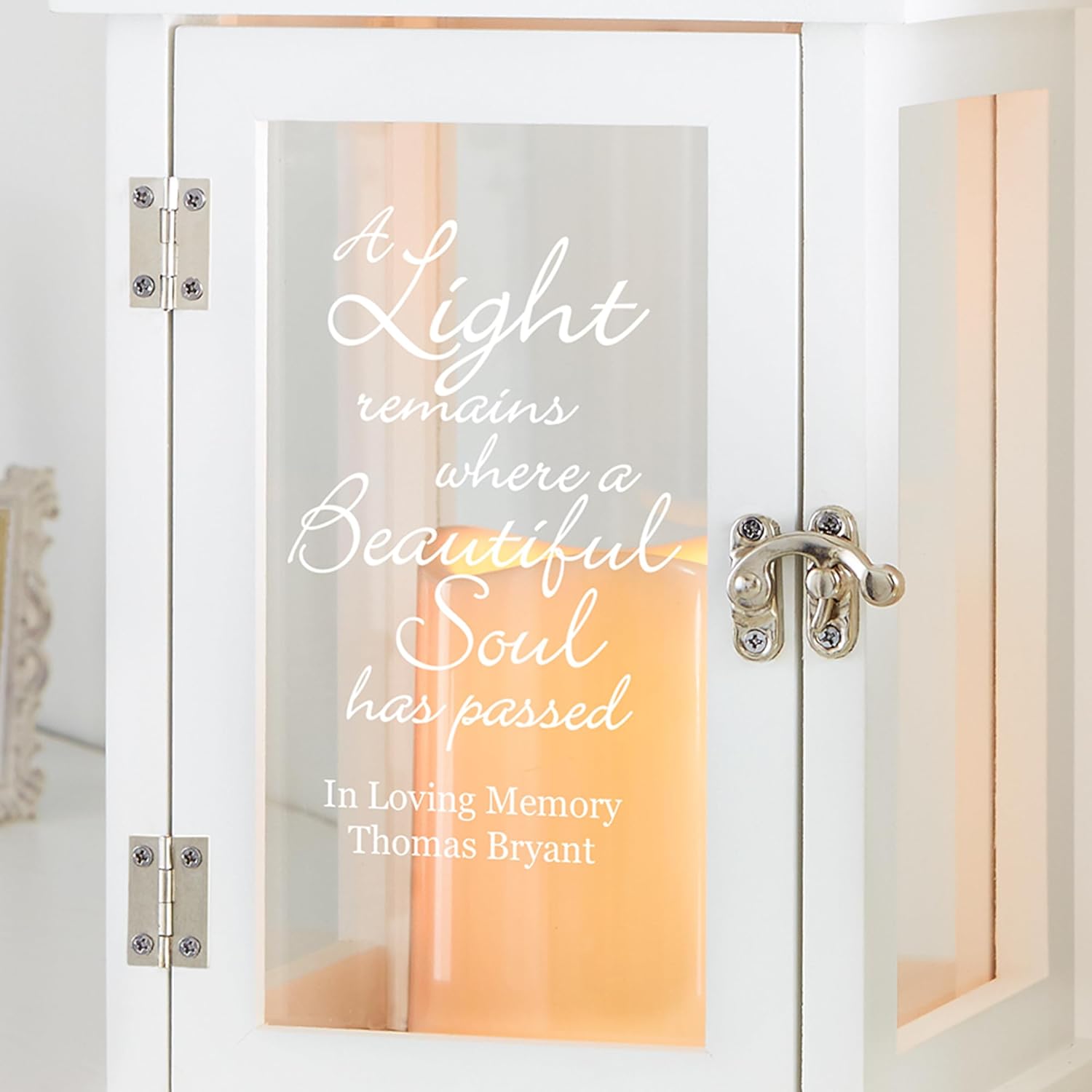 - UNIQUELY PERSONALIZED: Give a memorial gift that's one-of-a-kind. Personalize this beautiful lantern by engraving it with any 1- to 3-line message up to 16 characters each. This sentimental gift will be universally treasured.