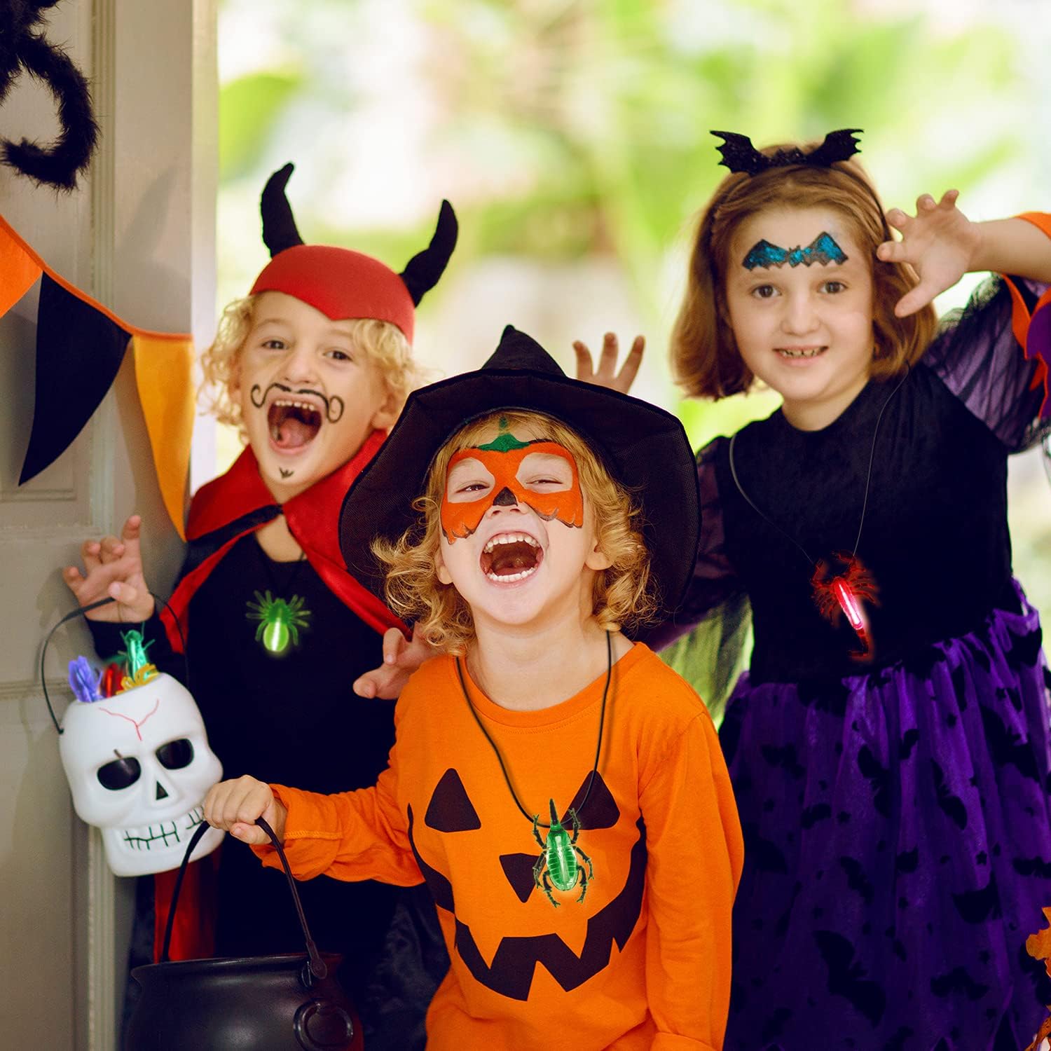 - Every light up plastic bug would be created to be a Halloween spooky necklace by using the hanging strings. You could wear them for a backyard hunt and late night hunt.You could hang it to goody bag , Jack-o'-lantern, Halloween buckets or any other decoration to embellish your Halloween party. Have fun with your party favors glow critters!