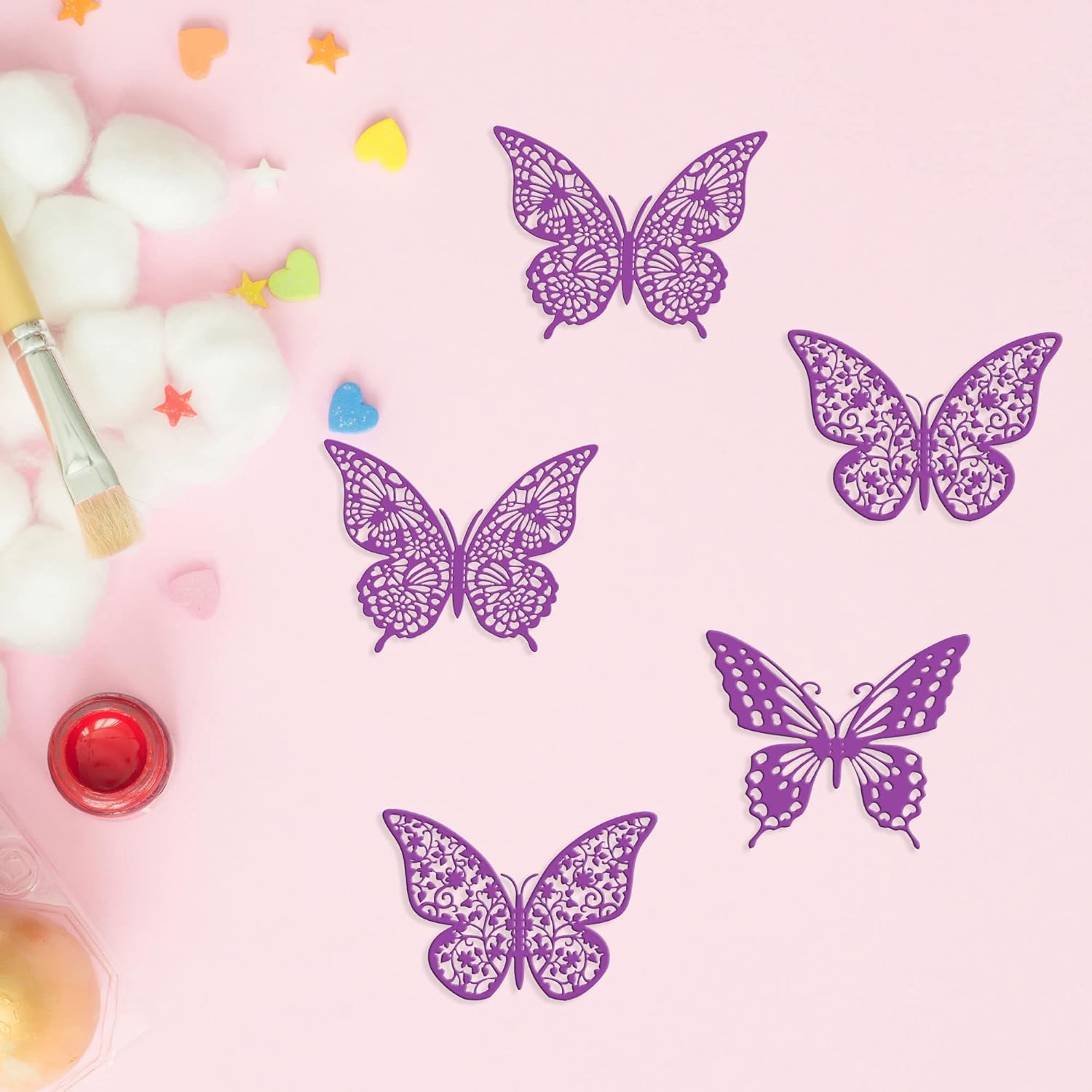 Gyufise 36 Pack Purple 3D Butterfly Cupcake Toppers Hollow Cake Decorations for Birthday Wedding Fairy Party Wall Sticker Decal