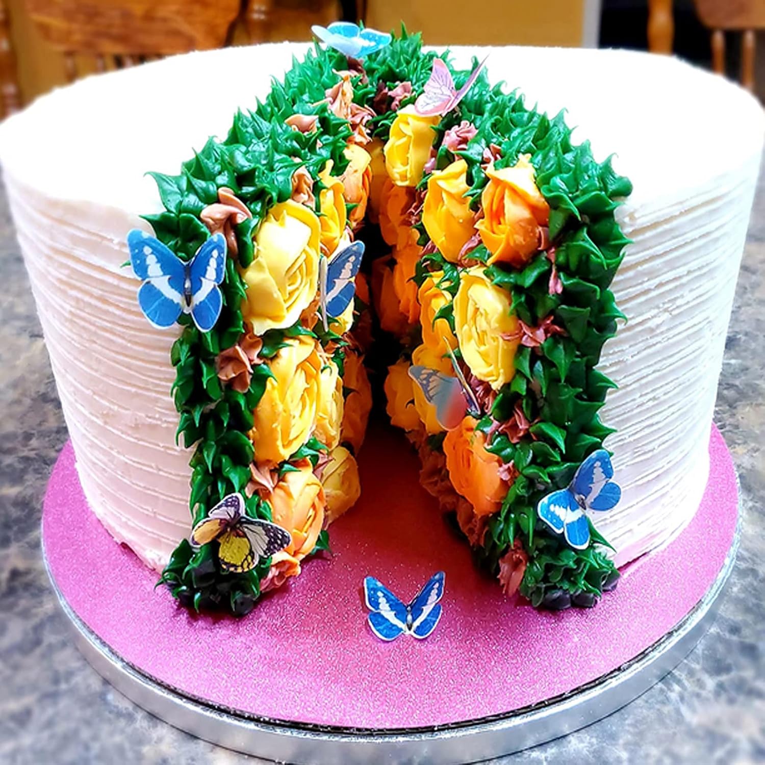 - Size &Color &Material: Edible Butterflys are 1.8*1.5 and 1.2*1.4 inches.It is made by edible rice paper which is made by starch.