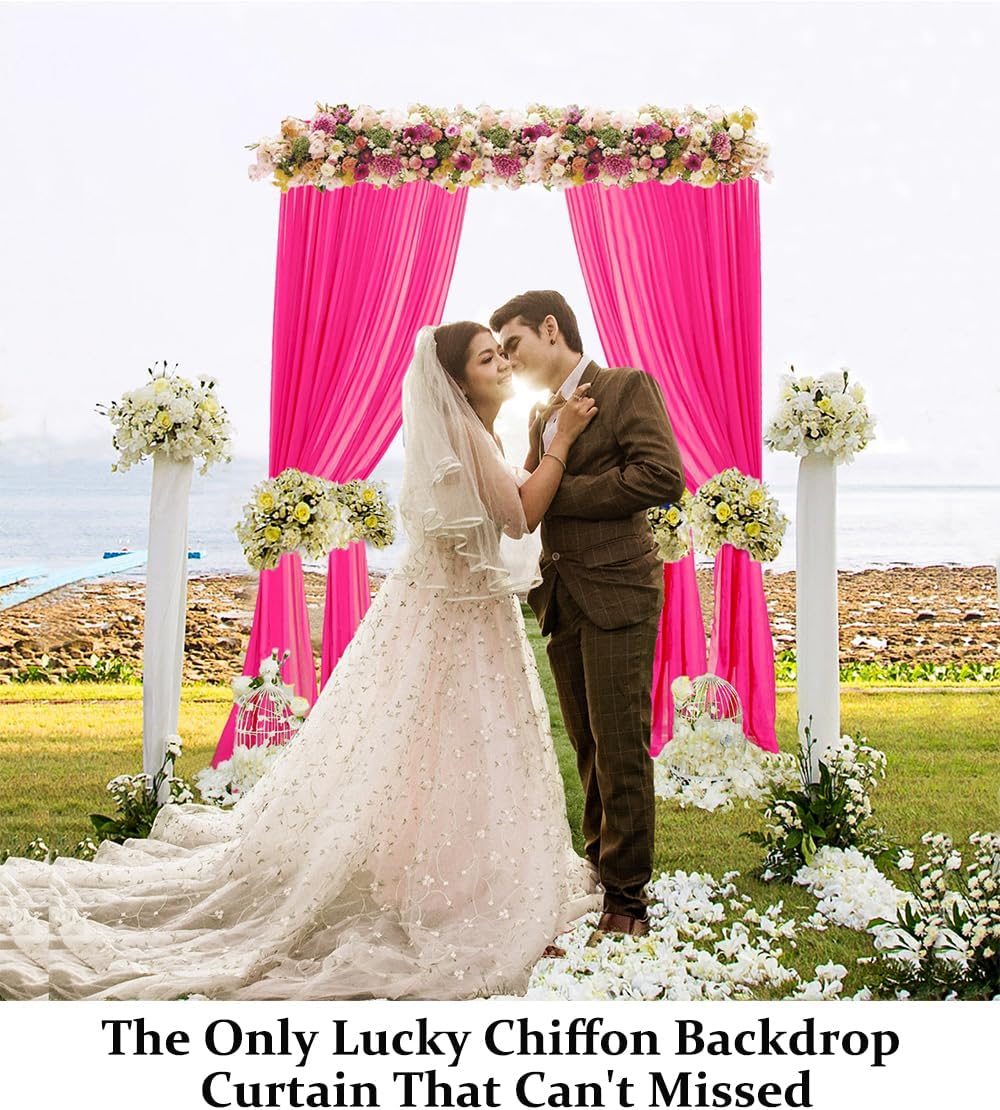 DUOBAO Hot Pink Chiffon Backdrop Curtains - 2 Panels 29"x96" - Wedding Sheer Backdrops for Elegant Living Room Voile Window Drapes Photography Wedding Ceremony Decor