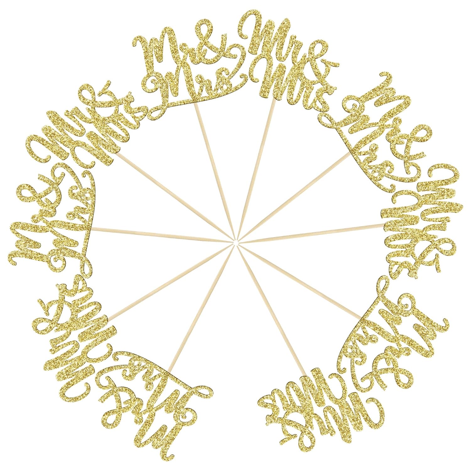 - 🧡Premium Material: These gold glitter Mr Mrs cupcake toppers are made of high quality paper and food-grade toothpick, very safe to put them on cakes, cupcakes, ice cream, fruits, pie, dessert, cheese or any dish and food appetizer you want to decorate.