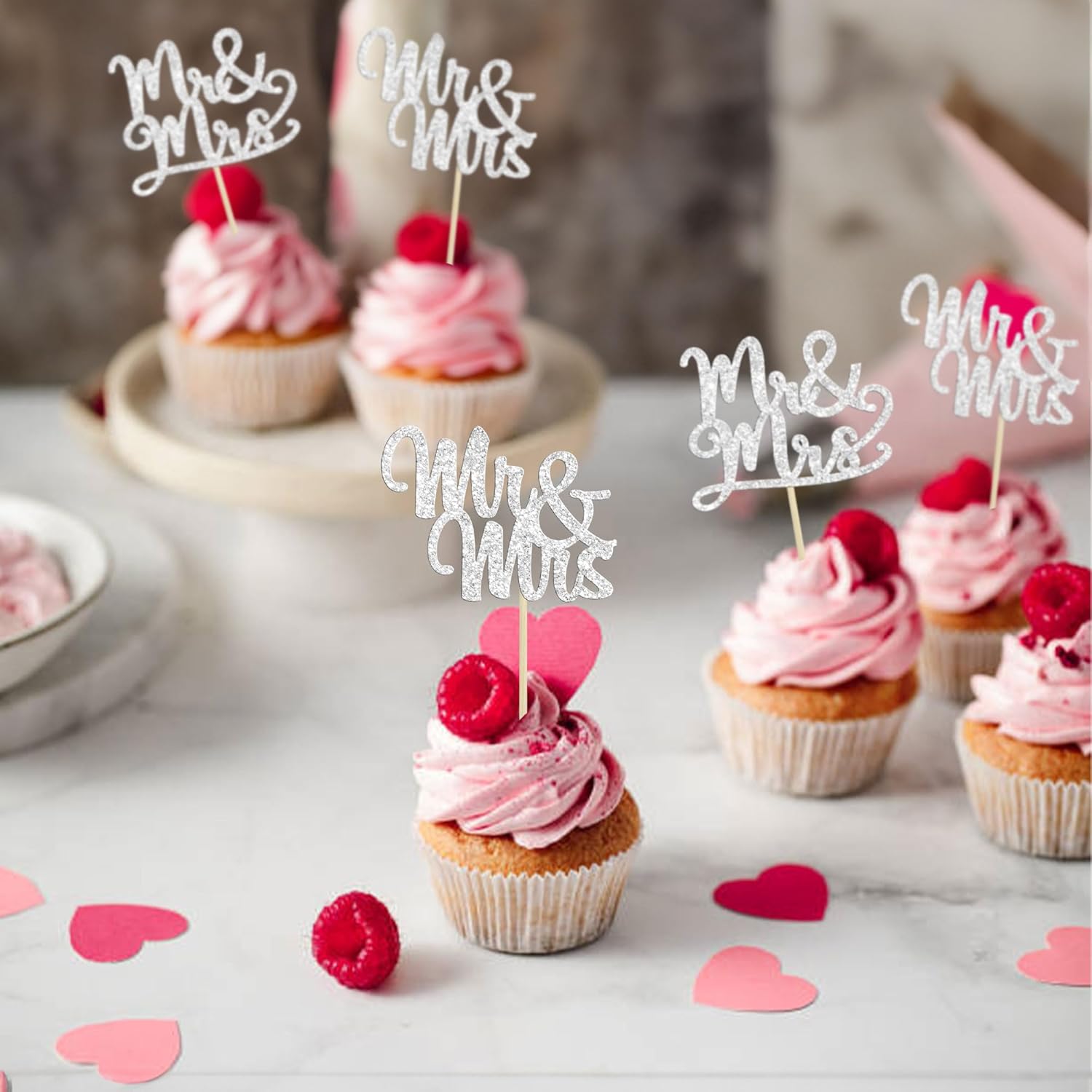 - 🧡Premium Material: These silver glitter Mr Mrs cupcake toppers are made of high quality paper and food-grade toothpick, very safe to put them on cakes, cupcakes, ice cream, fruits, pie, dessert, cheese or any dish and food appetizer you want to decorate.