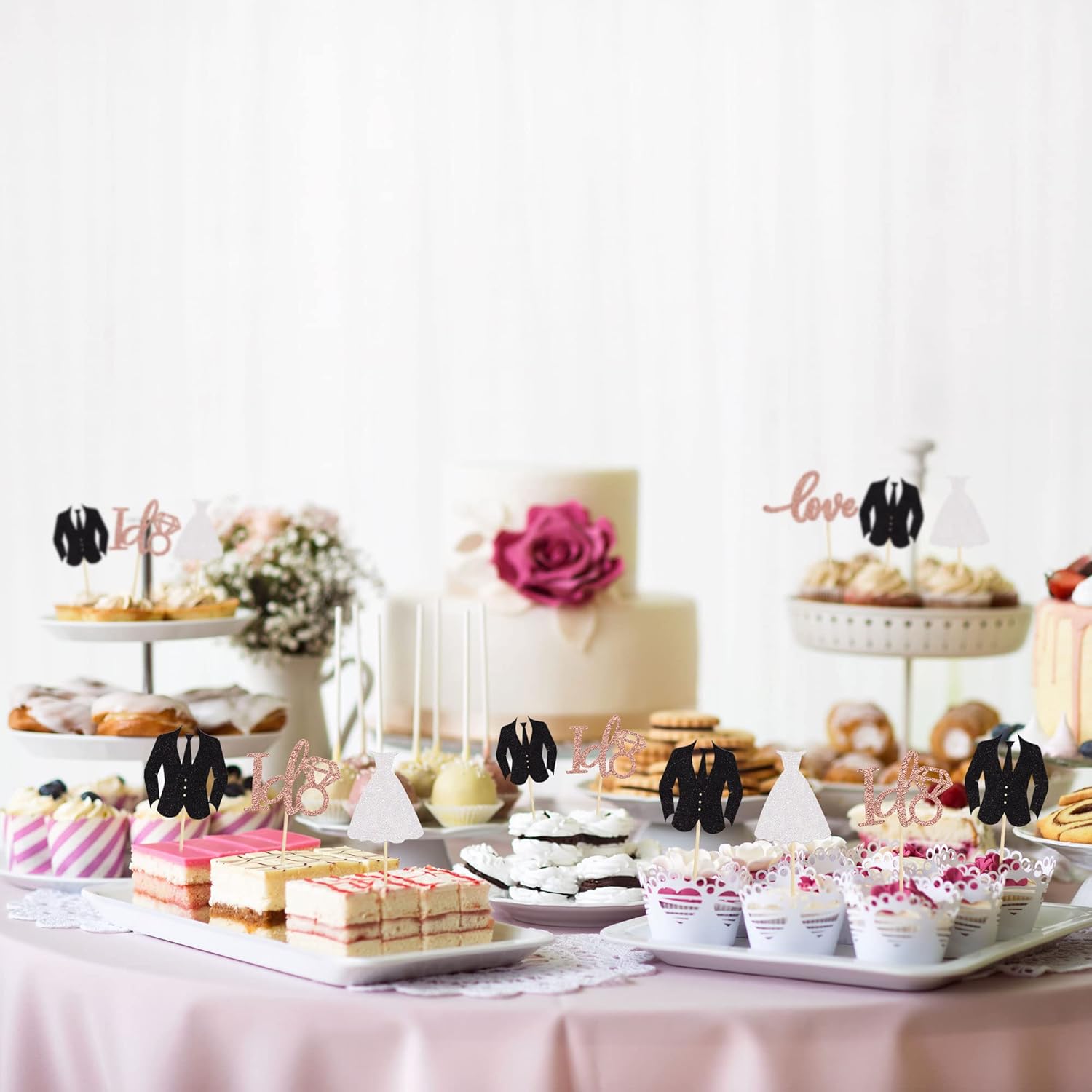 - 💍These glitter wedding cupcake toppers are so cute and good for bridal shower party, groom & bride theme party,wedding engagement party cake decoration. They can make your cupcake more attractive and bring the fun to your party. You can also apply them for ice cream, fruits, cookies and other desserts.