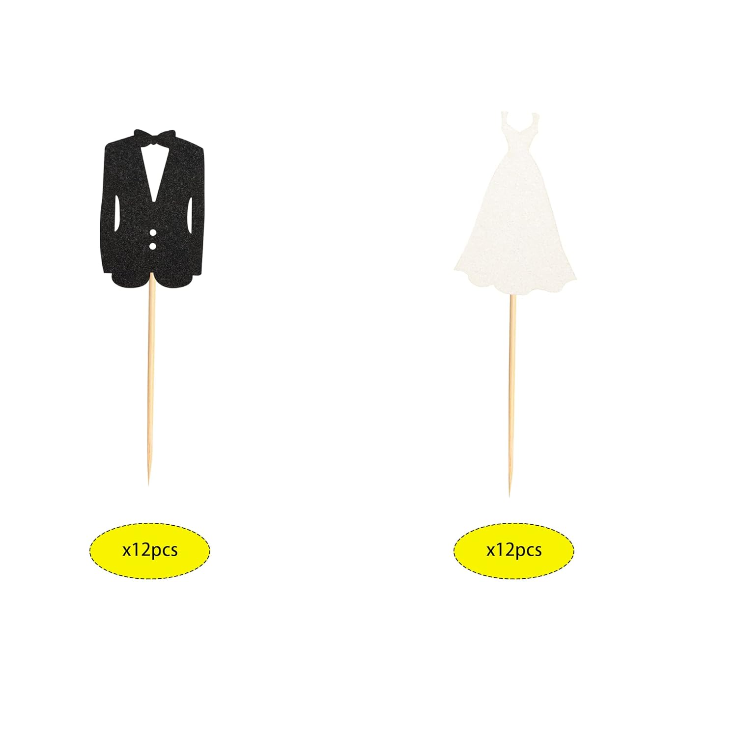 - Package include 24pcs bride and groom cupcake toppers, 2 styles, 12pcs of each style. Enough quantity can meet your different decoration needs.