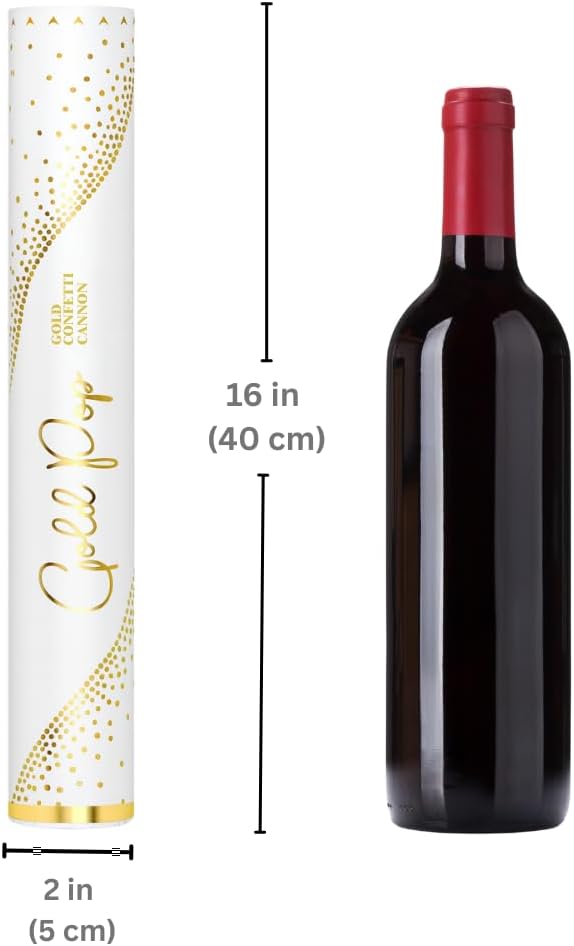 GOLD Streamers Confetti Cannon - 16" GOLD Streamers Party Poppers, Confetti Shooters/Glitter/Bomb, Streamer Poppers No Mess, Wedding Confetti Send Off, Loud POP, Shoot Up to 40ft