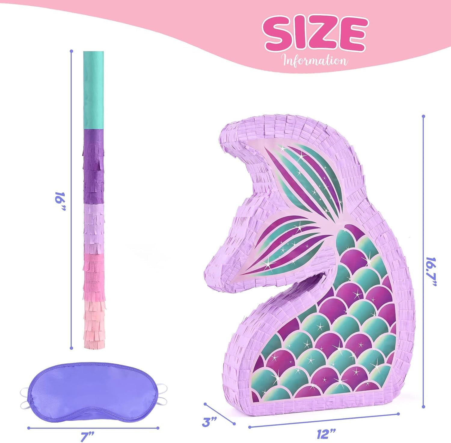 - BIG SURPRISE - This mermaid piñata set includes blindfold and bat. You can use them to start your party game right away without additional preparation. Ideal mermaid party favors for kids!