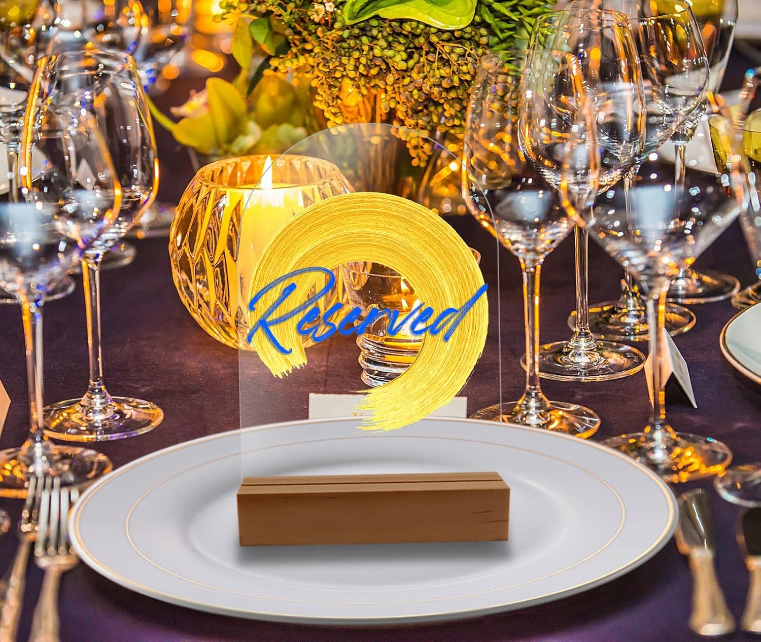 - Quality Material Adopted - Our blank acrylic signs are made of high quality 1/8โ thick clear acrylic. Table number stands are made of natural pine wood material. The acrylic blanks with stand are precisely cut with clean lines and polished with smooth edges. Durable for long time use. It won't easily leave scratches on the surface.