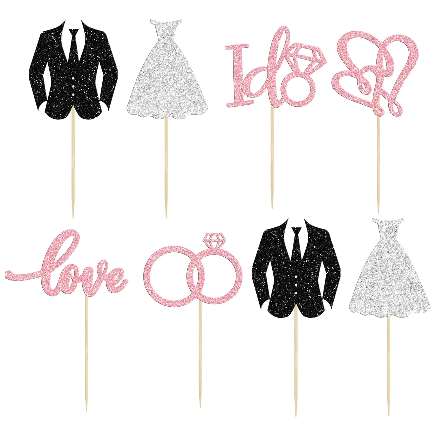 - ๐๐Premium Material: These Wedding Cupcake Toppers are made of high quality 300 gram glitter card stock and food-grade toothpick, very safe to put them on cakes, cupcakes, ice cream, fruits, pie, dessert, cheese or any dish and food appetizer you want to decorate flamingo party decorations.