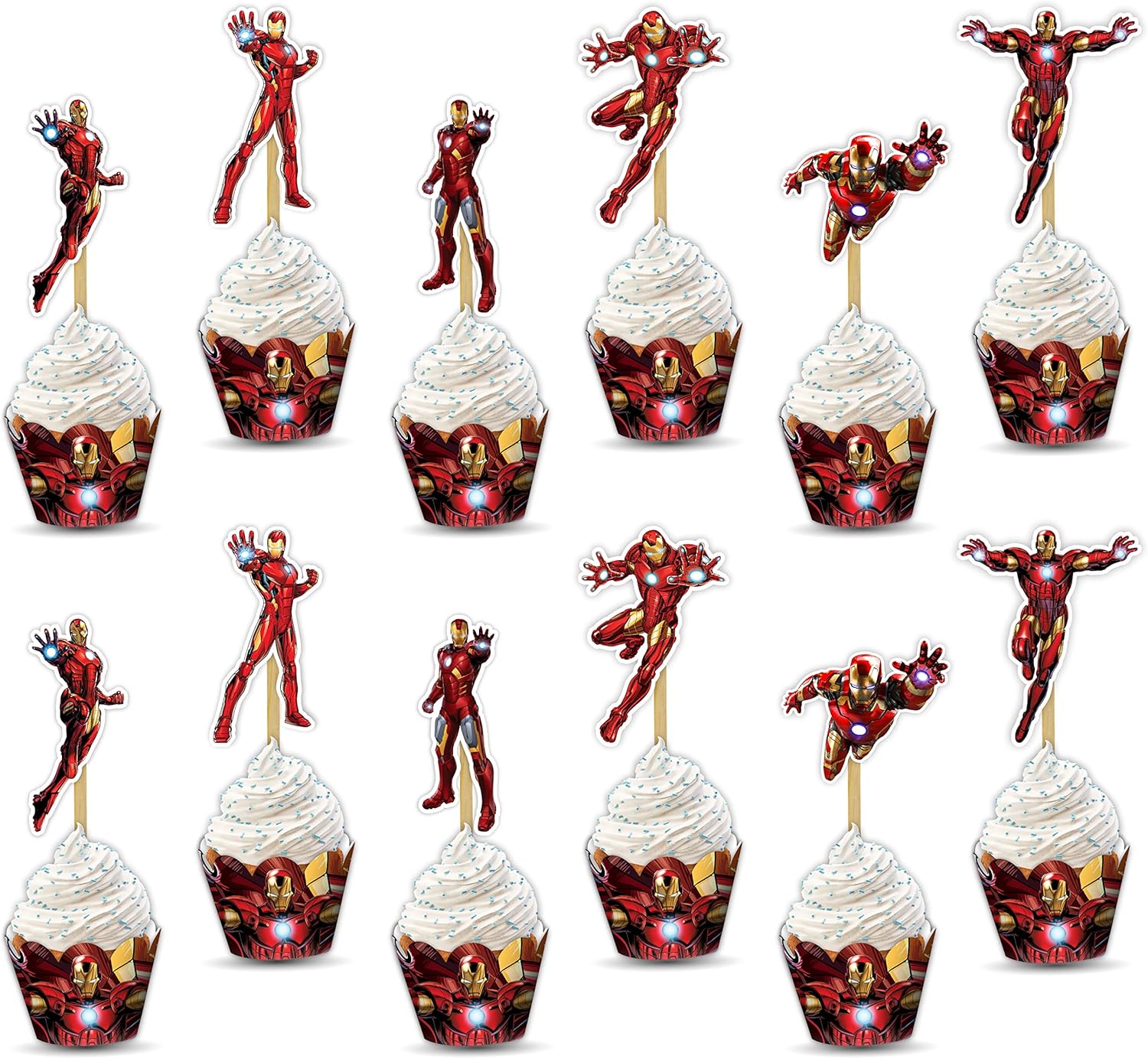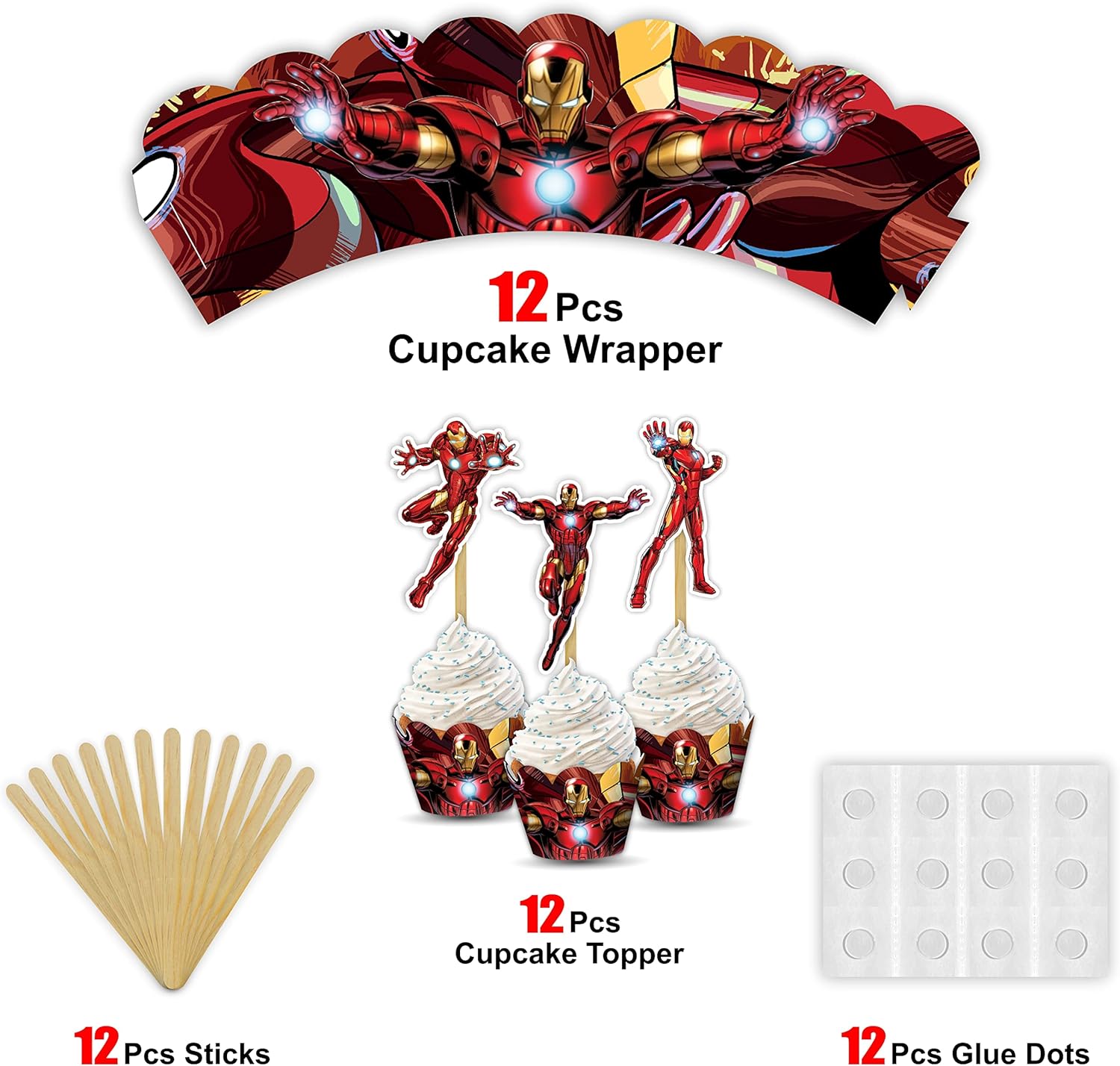 "Irn Man Cupcake Wrapper ā Theme Birthday Party Supplies ā Cartoon Inspired Cupcake Decoration Wraps for Birthday, Baby Shower, School Events, and Themed Parties"