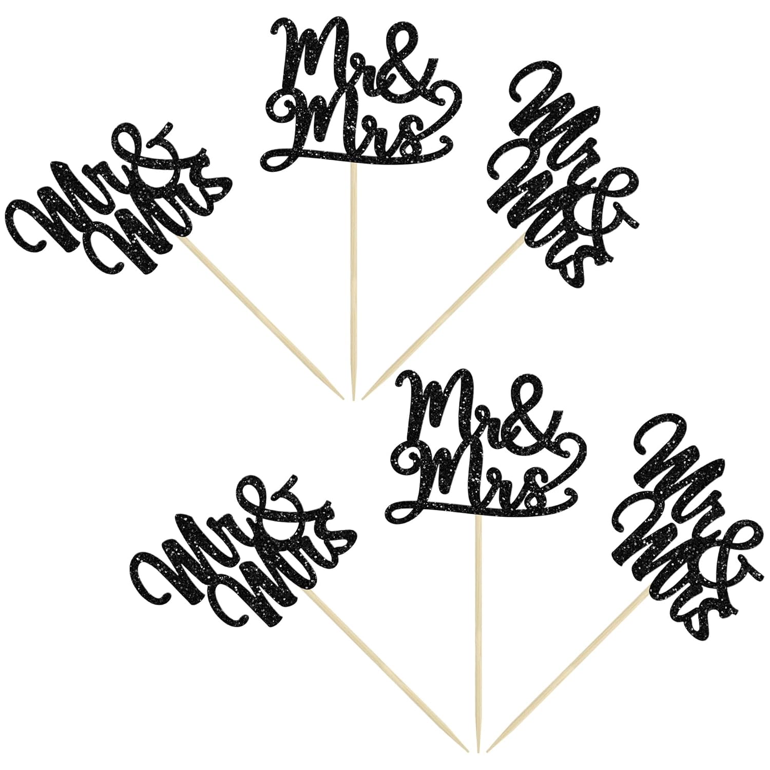 Gyufise 36Pcs Mr & Mrs Cupcake Toppers Glitter Bridal Shower Cupcake Picks for Wedding Engagement Theme Party Cake Decorations Supplies Black