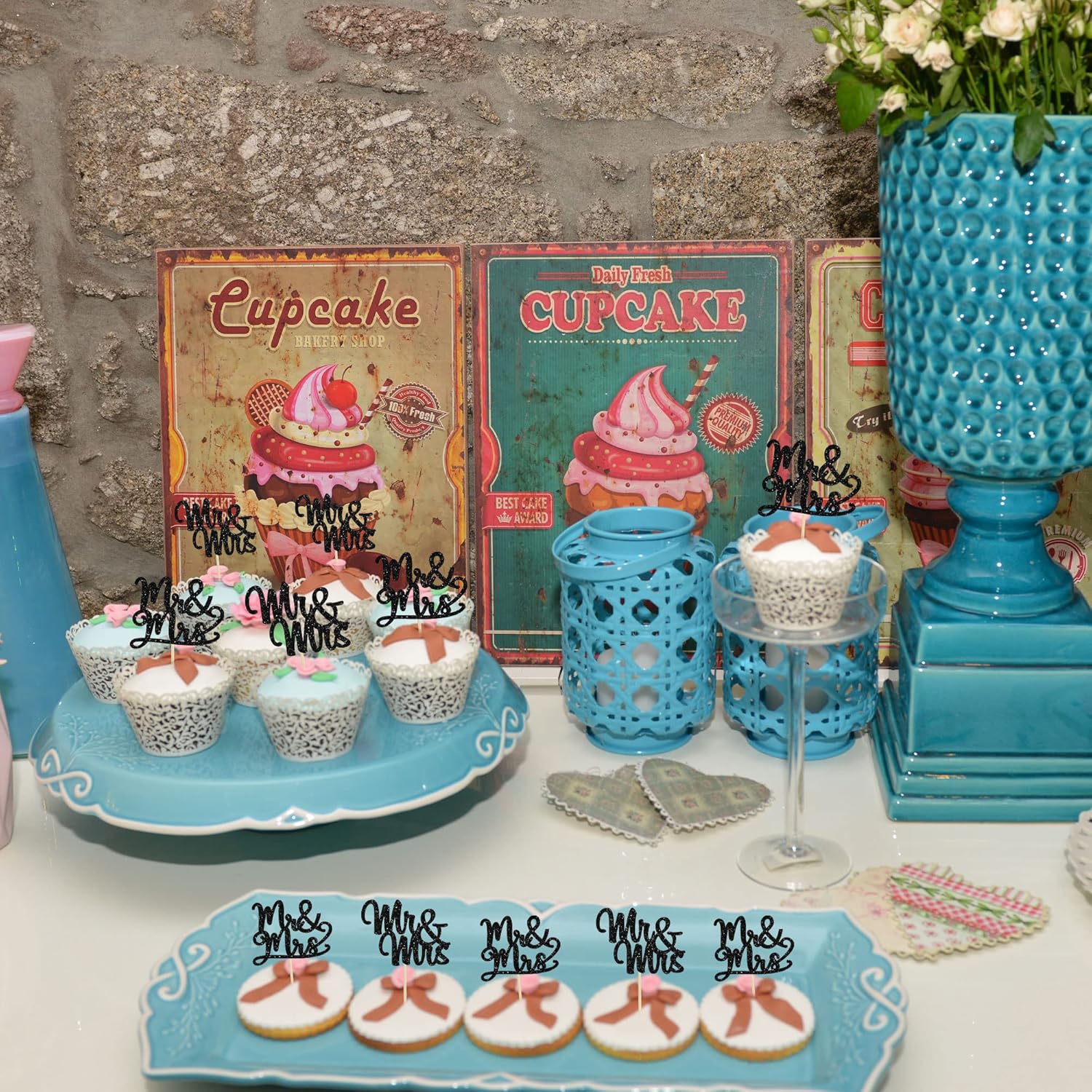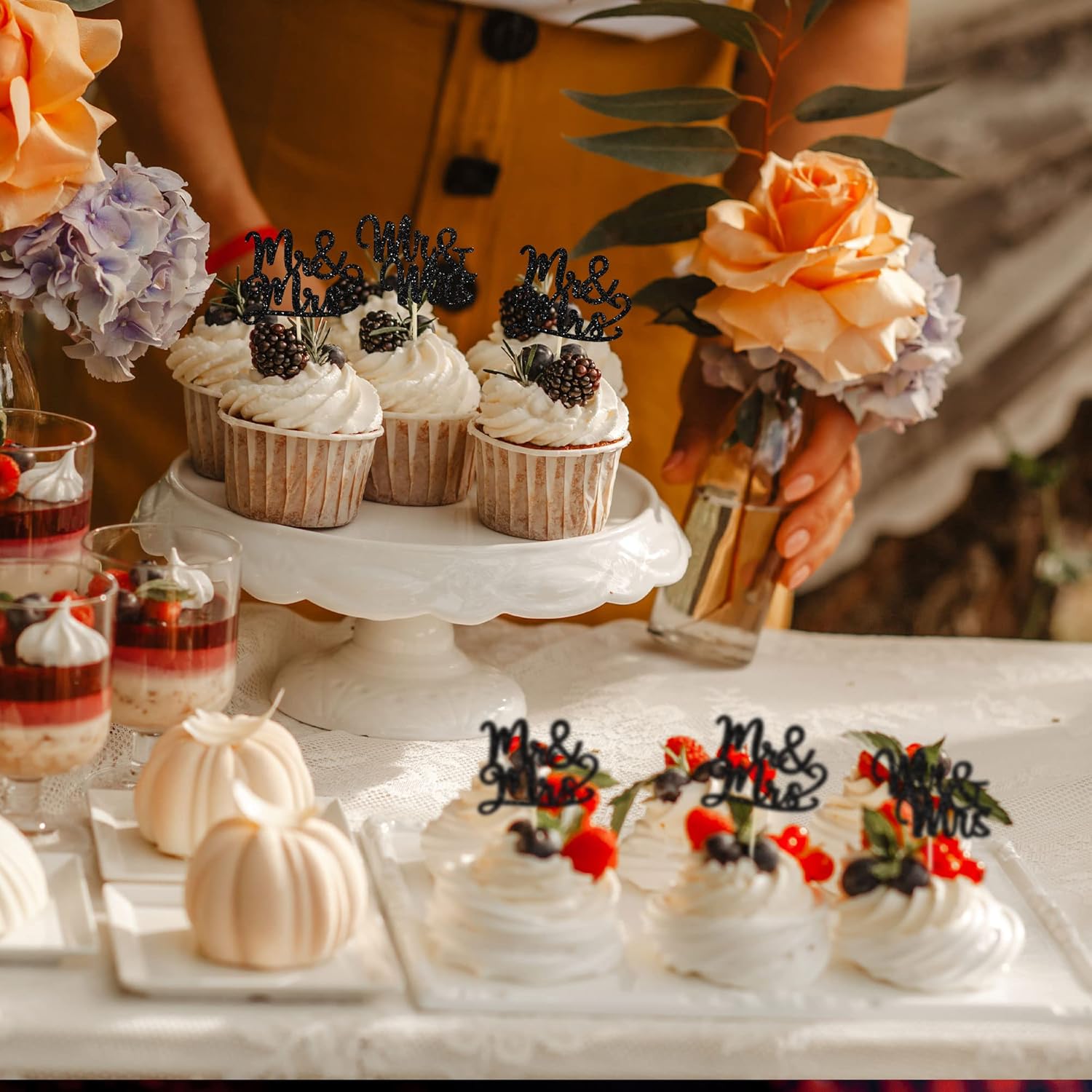 - 🧡🧡Mr Mrs Cupcake Toppers are so cute and good for bridal shower theme party, wedding engagement theme party, birthday party cupcake decorations. They can make your cupcake more attractive and bring the fun to your party. You can also apply them for ice cream, fruits, cookies and other desserts.
