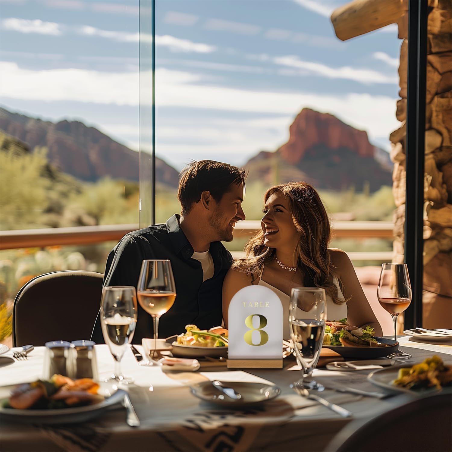 - DELICATE DESIGN - Glass-look acrylic is all the rage! Our frosted arch-shaped acrylic blanks paired with stands add a stylish and modern look to your event. The combination of the sturdy, wide wooden base and the acrylic blank ensures that any table number, card, or photo you create and display will always be upright during your event. They form the perfect foundation for creating gift table signs, picture displays, or wedding card holders.