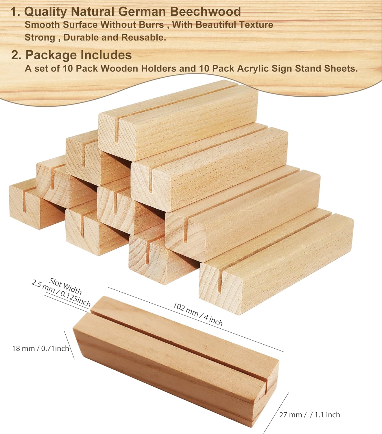 - PERFECT MATCH - This set includes 10 frosted arch-shaped blank acrylic pieces and 10 wooden sign stands for creating your own DIY wedding signs. Each blank acrylic piece measures 102x152x2mm / 4x6 inches, 1/8 inch thick, and each wood stand measures 102x28x20 mm / 4x1.1x0.8 inches. All acrylic pieces come with protective film on both sides to prevent scratches; simply peel off the film when ready to personalize.