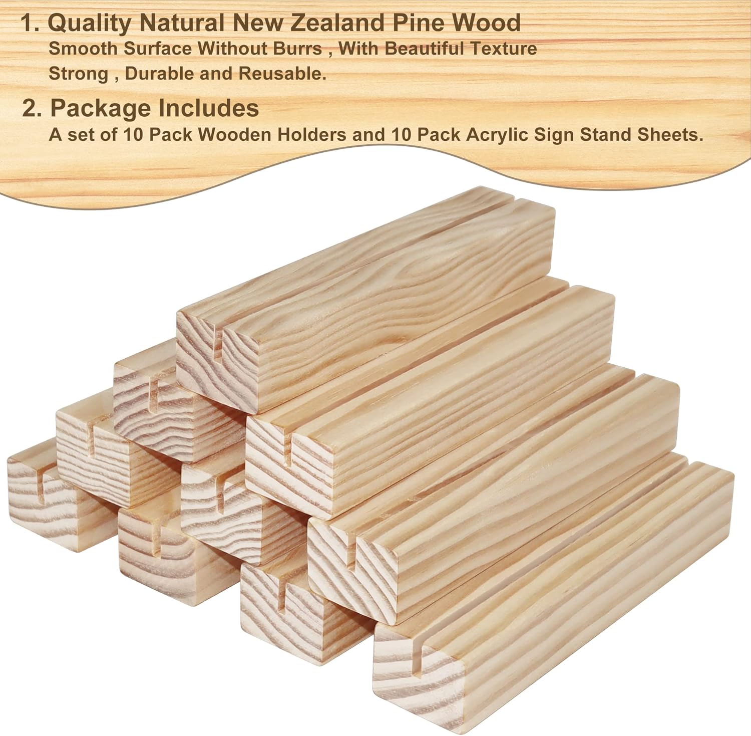 - Quality Material Adopted - Our blank acrylic signs are made of high quality 1/8โ thick clear acrylic. Table number stands are made of natural pine wood material. The acrylic blanks with stand are precisely cut with clean lines and polished with smooth edges. Durable for long time use. It won't easily leave scratches on the surface.