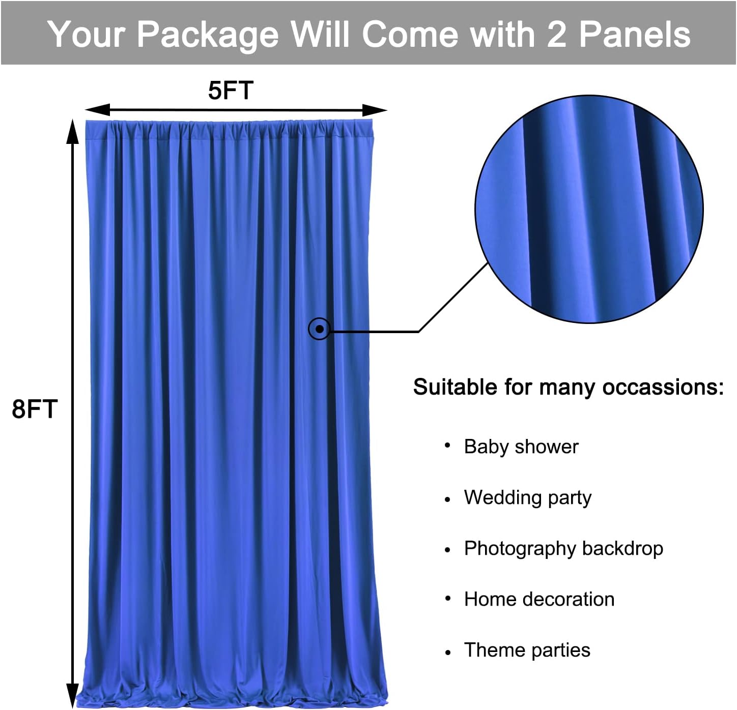 - Thick Royal Blue Fabric Backdrop Curtain Panels: Your package will come with 2 panels royal photography backdrop drapes(The other accessories not included shown in the picture). Each background panels measures 5ft width and 8ft height.Entire backdrop curtain measures 10ft x 8ft.