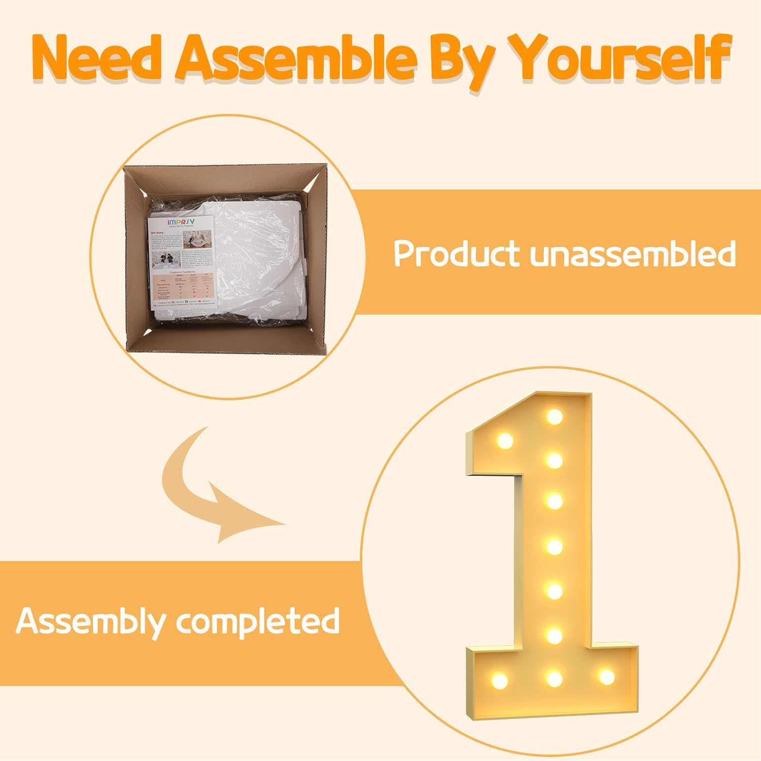 - Assembly Required: Our large marquee numbers is made from foam board and easy to assemble with our splicing mode. Just follow the numbered instructions to align and insert the bottom plate, and reinforce it with a hot glue gun. Then, you're done!