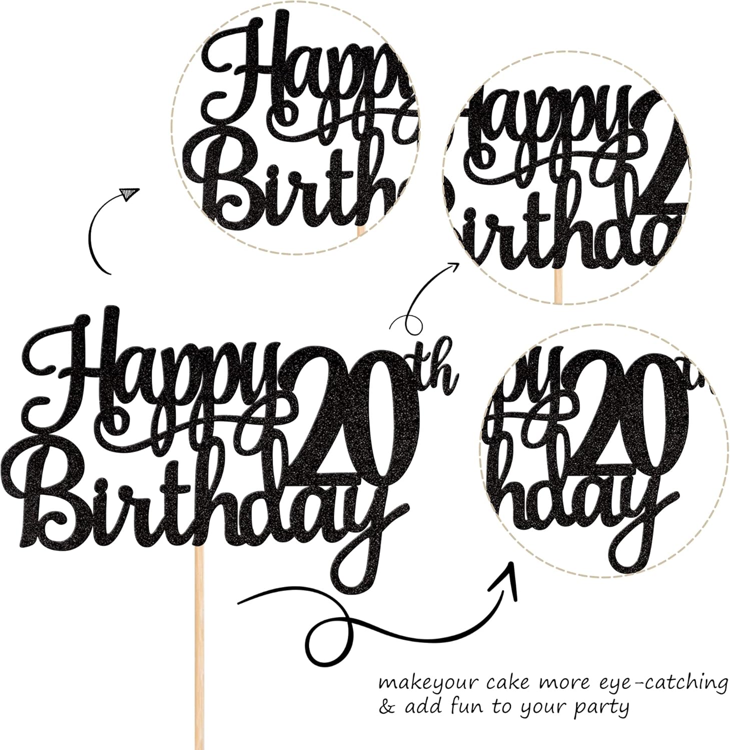- Wide Usages ! The cake topper is perfect for happy 20th birthday theme party, cheers to 20 years birthday theme party cake decorations, they can make your cake more attractive and bring the fun to your party.You can also apply them for ice cream, fruits, cookies and other desserts.