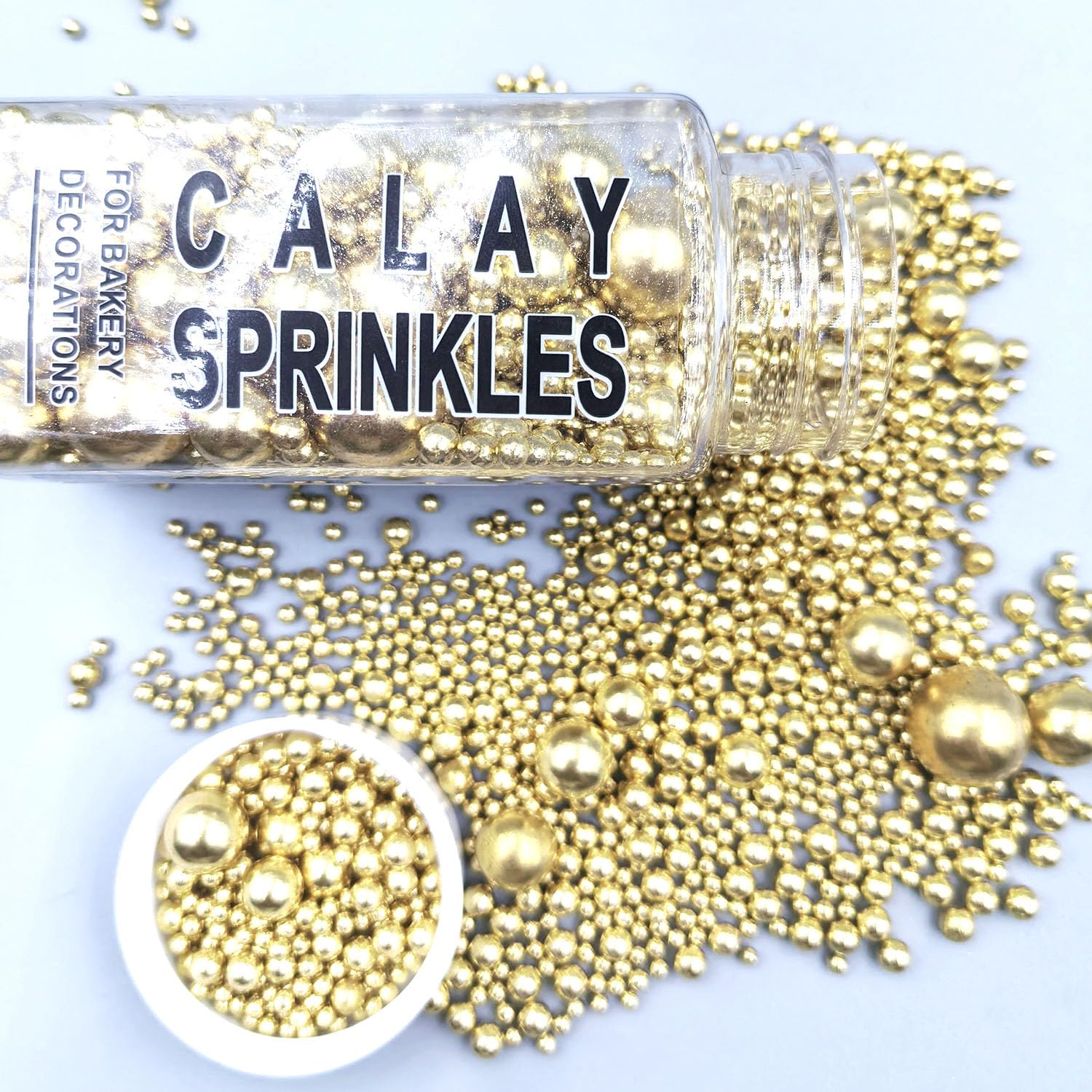 - SIZE: Gold Pearl Sugar Sprinkles Mixing Size. Total Net Weight: 4.23 Ounces, 120 Grams