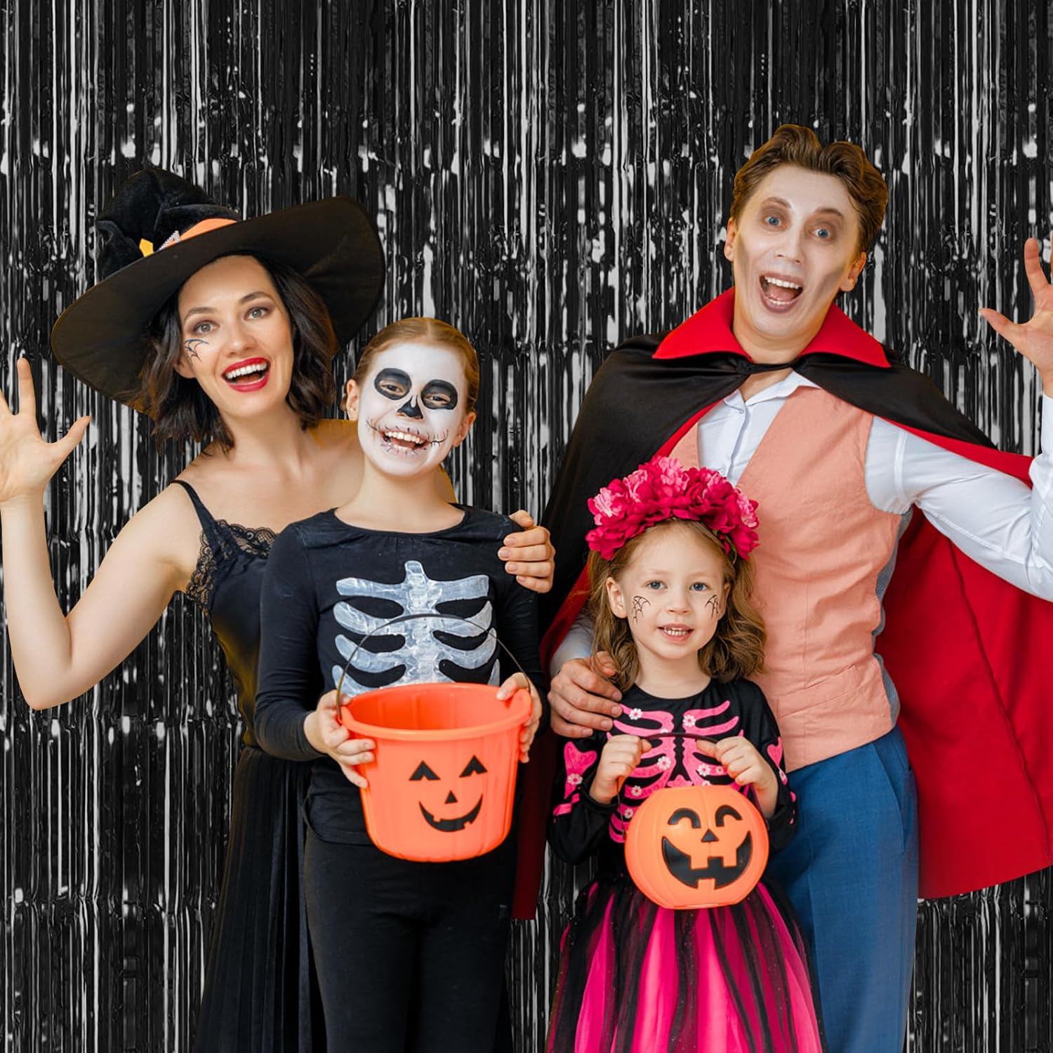 10 Pack Black Backdrop Curtain 3.2ft x 8.2ft Metallic Tinsel Foil Fringe Curtains Photo Booth Background for Birthday Party Decoration Baby Shower Engagement Wedding Christmas Decoration (Black)