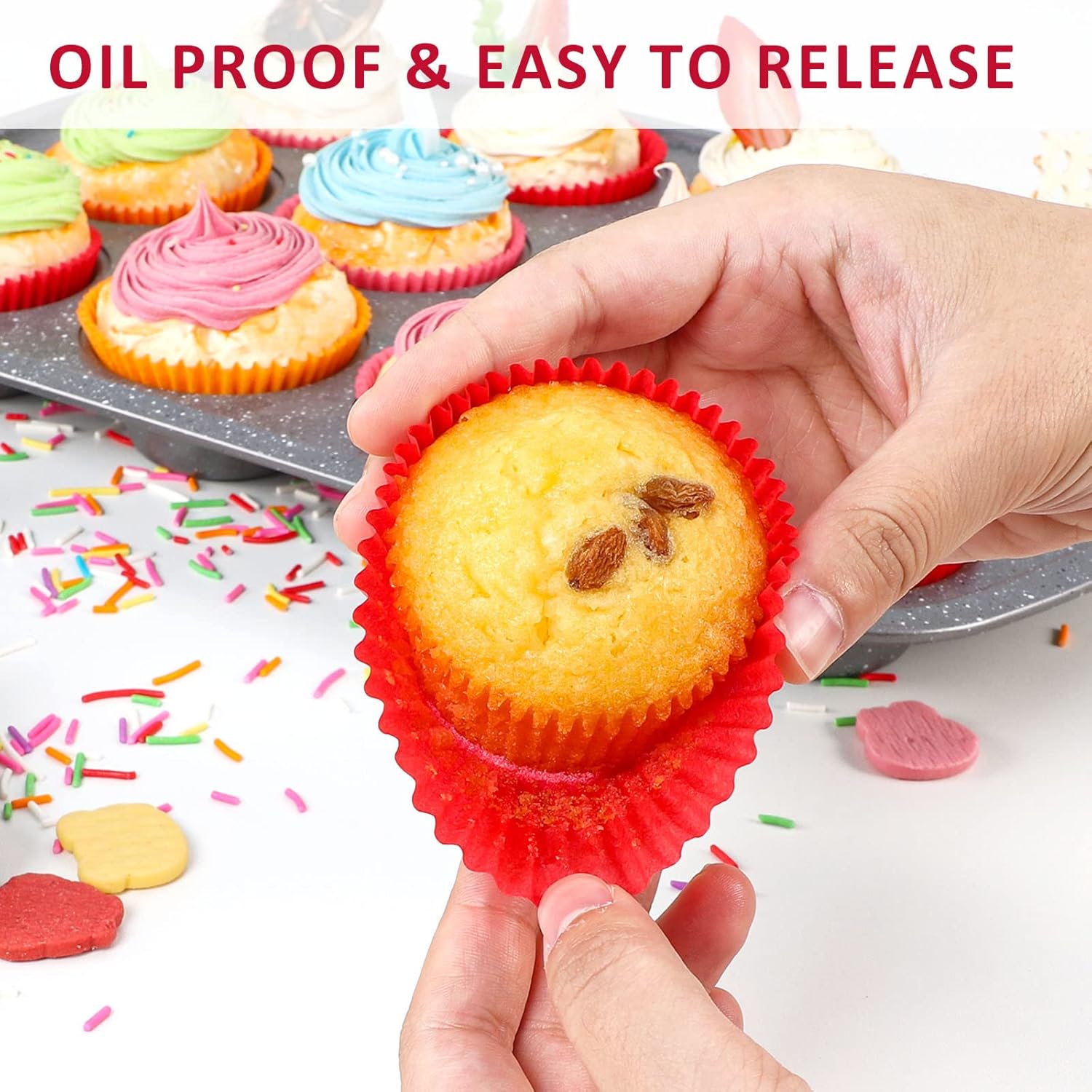 Caperci Standard Red Cupcake Muffin Liners 500-Count, No Smell, Food Grade & Grease-Proof Paper Baking Cups (Red)