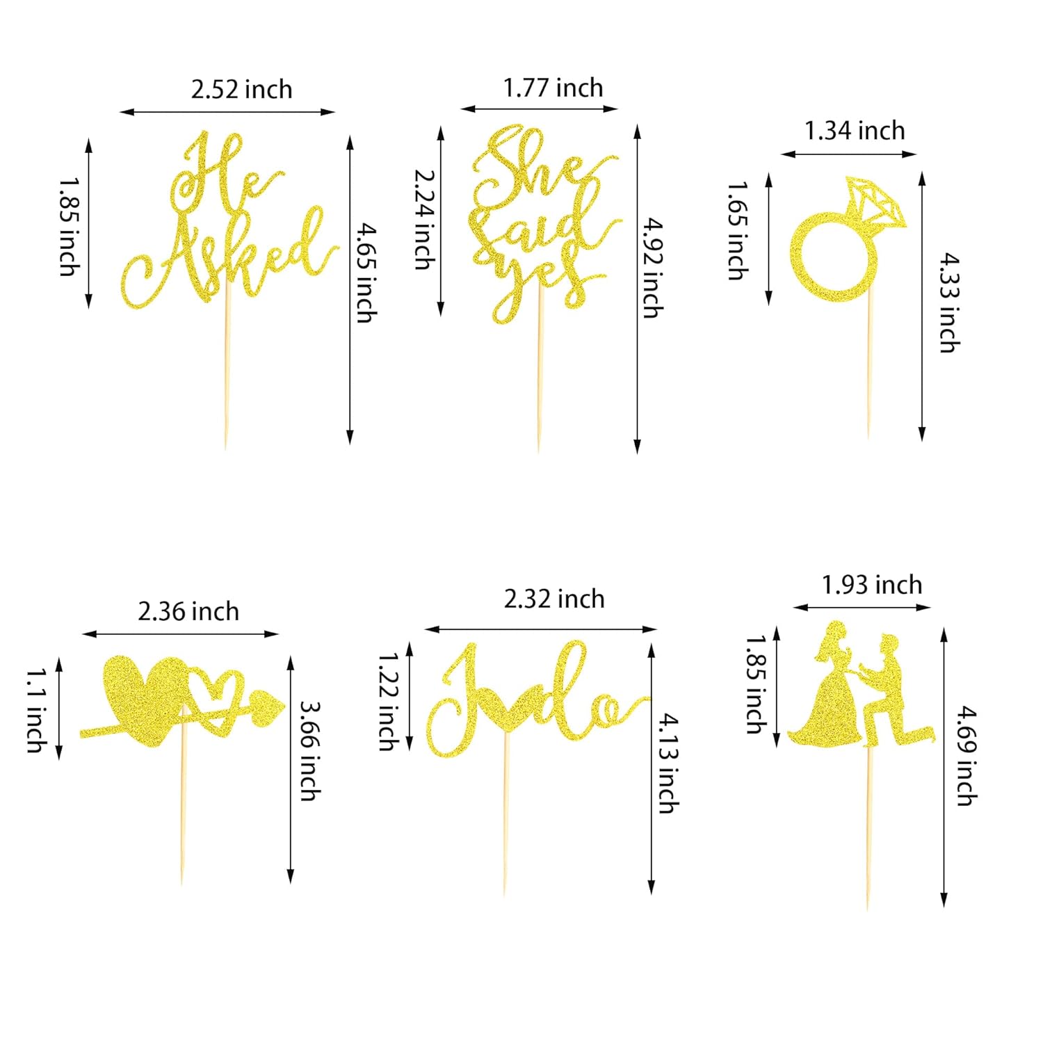 - Package include 24pcs gold glitter he asked she said yes cupcake toppers, 6 styles, 4pcs of each style.