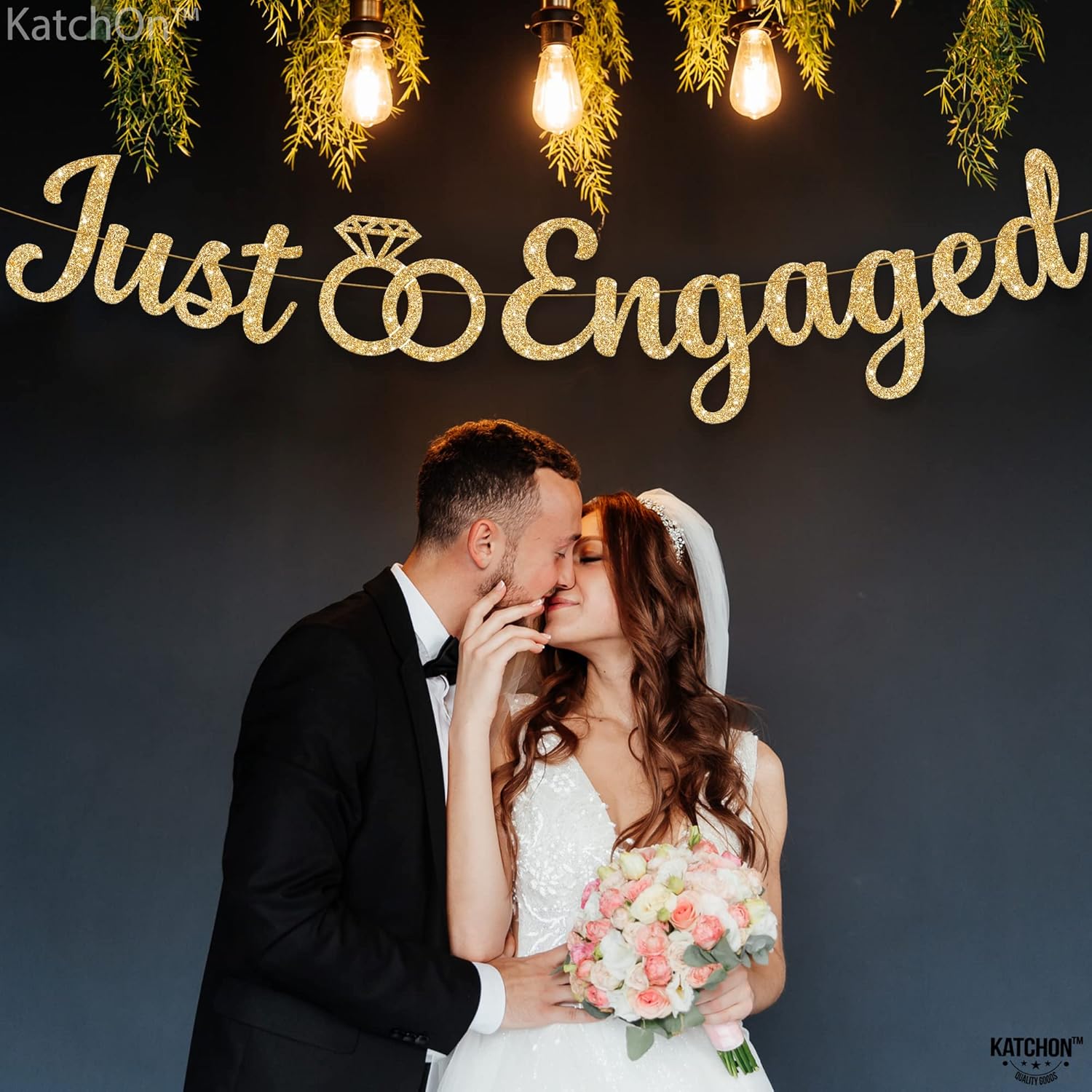 KatchOn, Glitter Gold Just Engaged Banner - 10 Feet, No DIY | Engagement Banner for Just Engaged Decorations | Engagement Party Decorations | Party Decorations