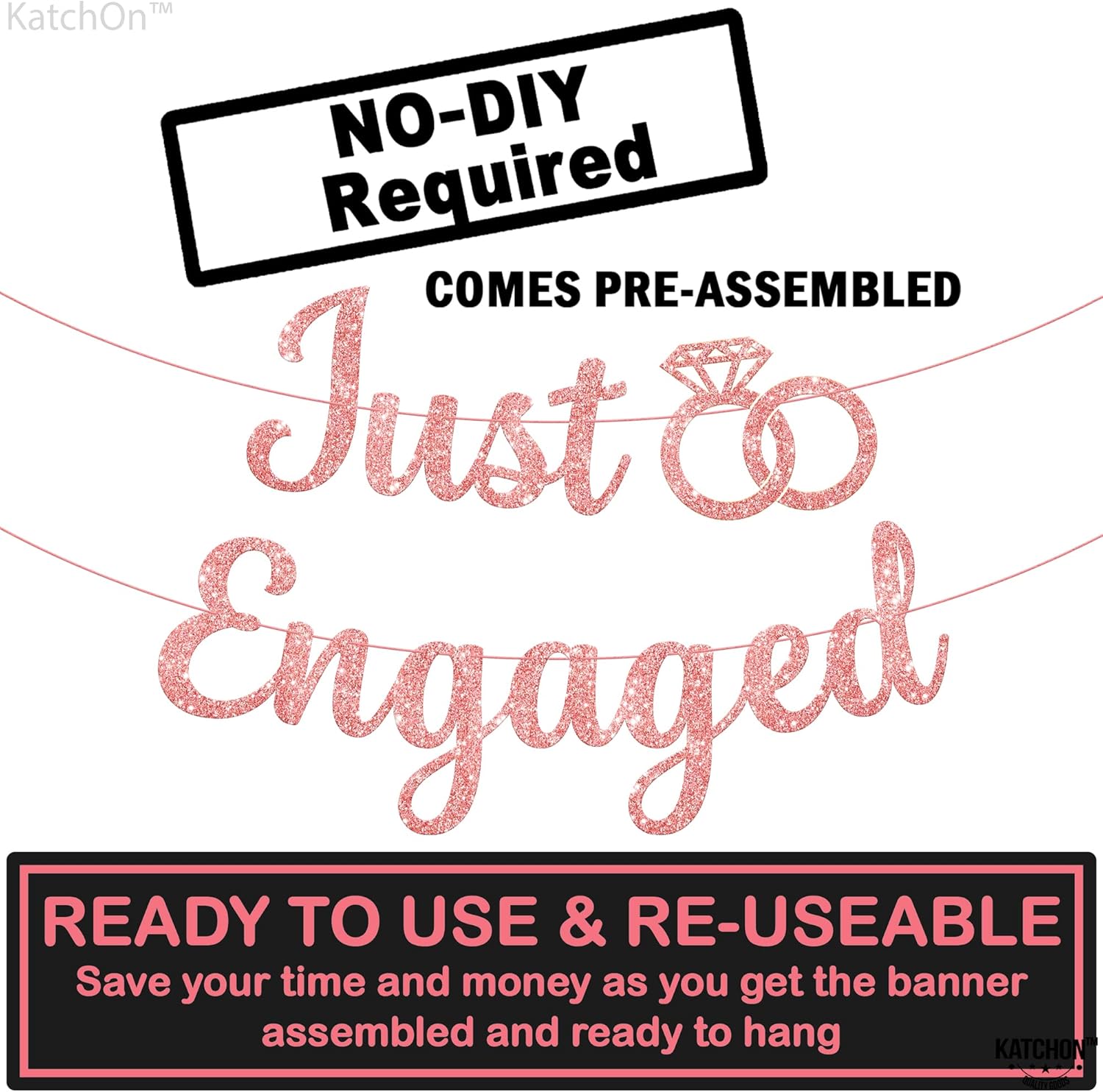 - CONFIDENTLY CELEBRATE WITH OUR JUST ENGAGED BANNER : These bachelorette party decorations sign will surely make a remarkable in your engagement party decorations set. We aim to give you good service if you are not satisfied with the just engaged decorations party banner. We always care about the quality of our engagement party banners. Our just engaged banner rose gold is easy to set up and will make your special day even more memorable.