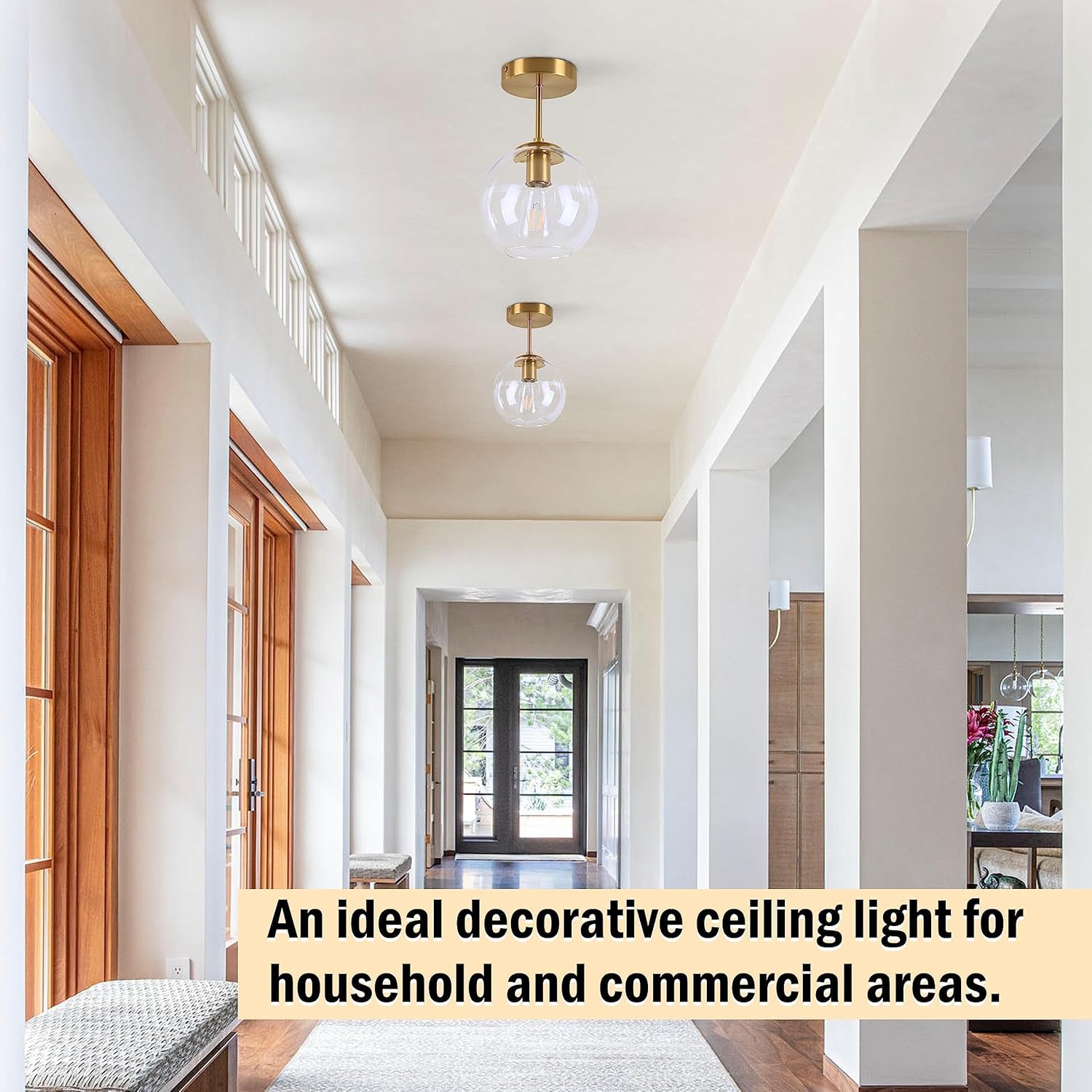 - [ Size & Design ] This ceiling globe lamp has a height of 11inch, a width of 7.08inch and a ceiling plate of 4.7inch.The classic mid-century modern style is both elegant and stylish. The gold finish and clear glass shade create the perfect ambiance while illuminating the room with a twist