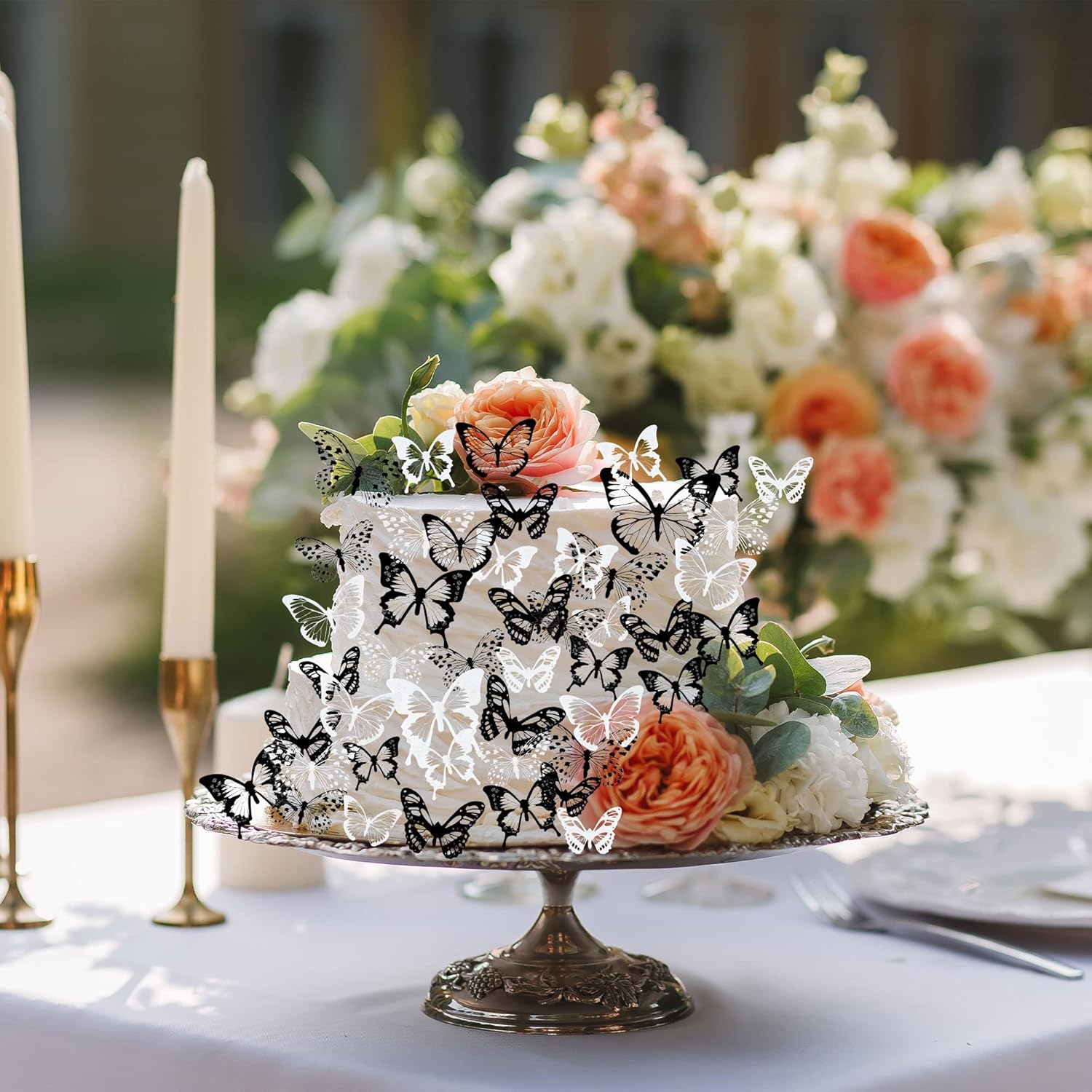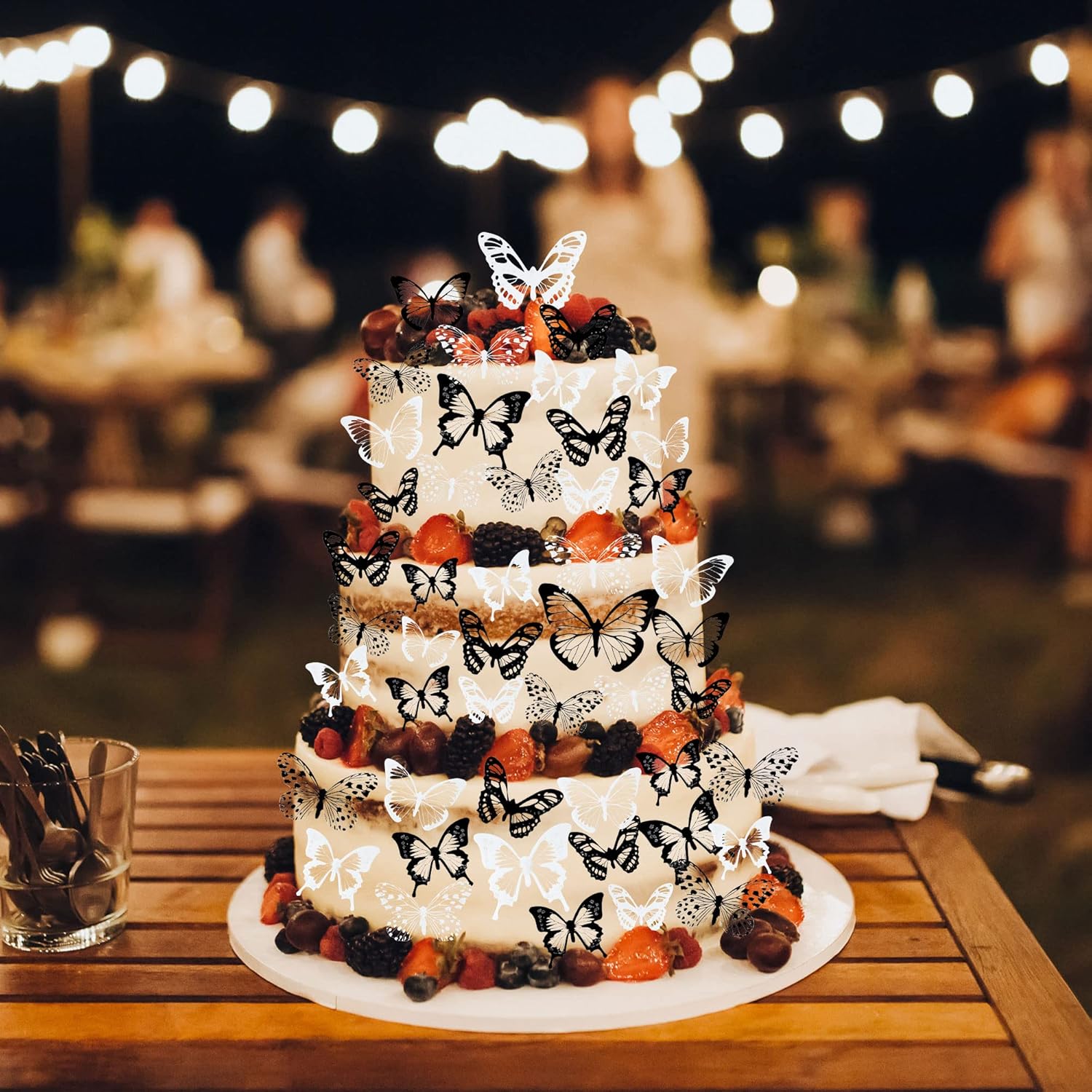 Gyufise 36Pcs Butterfly Cupcake Toppers - Lively PVC Art 3D Cake Decorations for Baby Shower, Kids Birthday Party - Black, White, Transparent