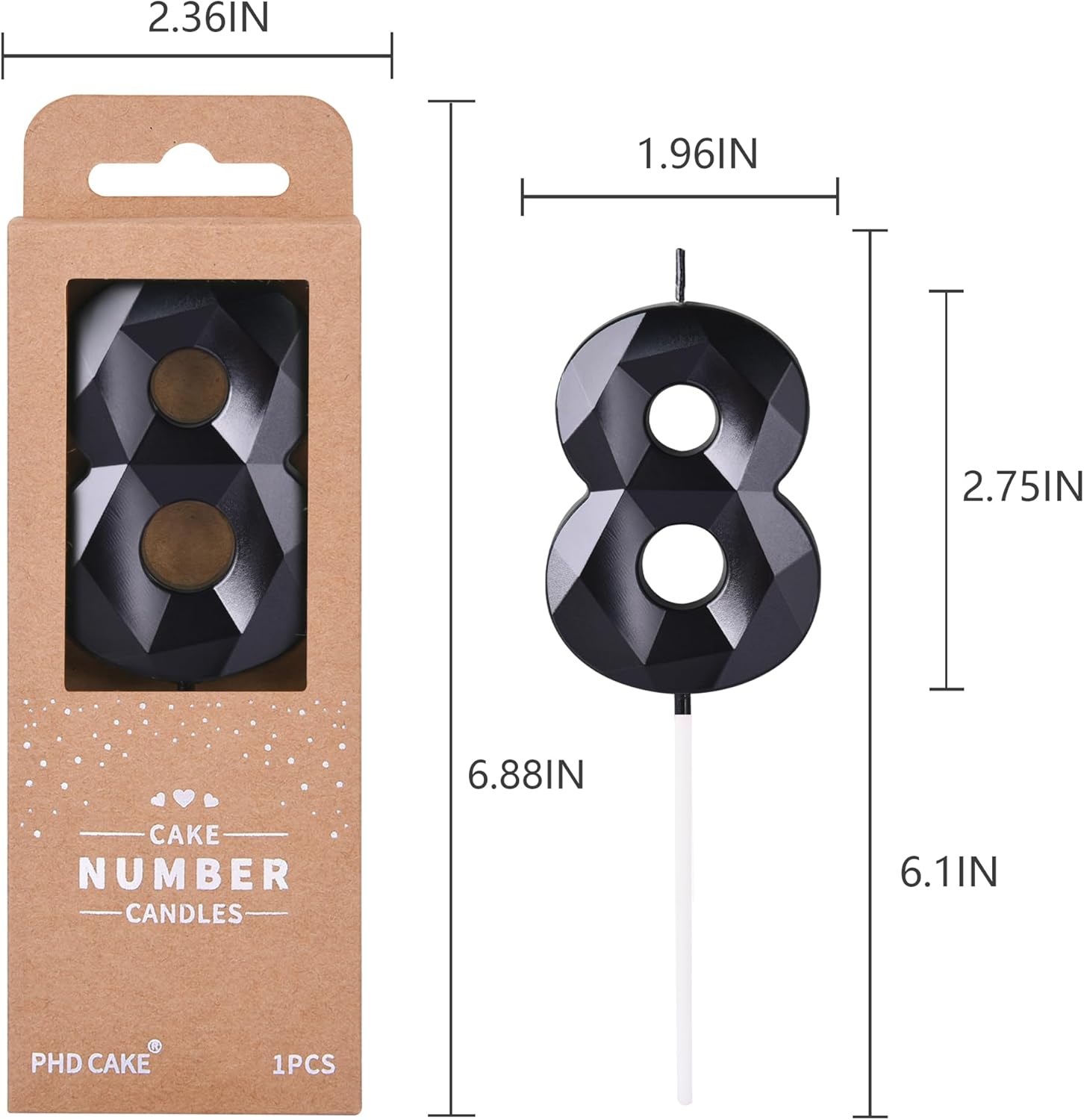 - New: 2.76 Inch Large Crystal Black 8 Number Birthday Candle designed to make your cake and birthday a unique and truly inspiring event.