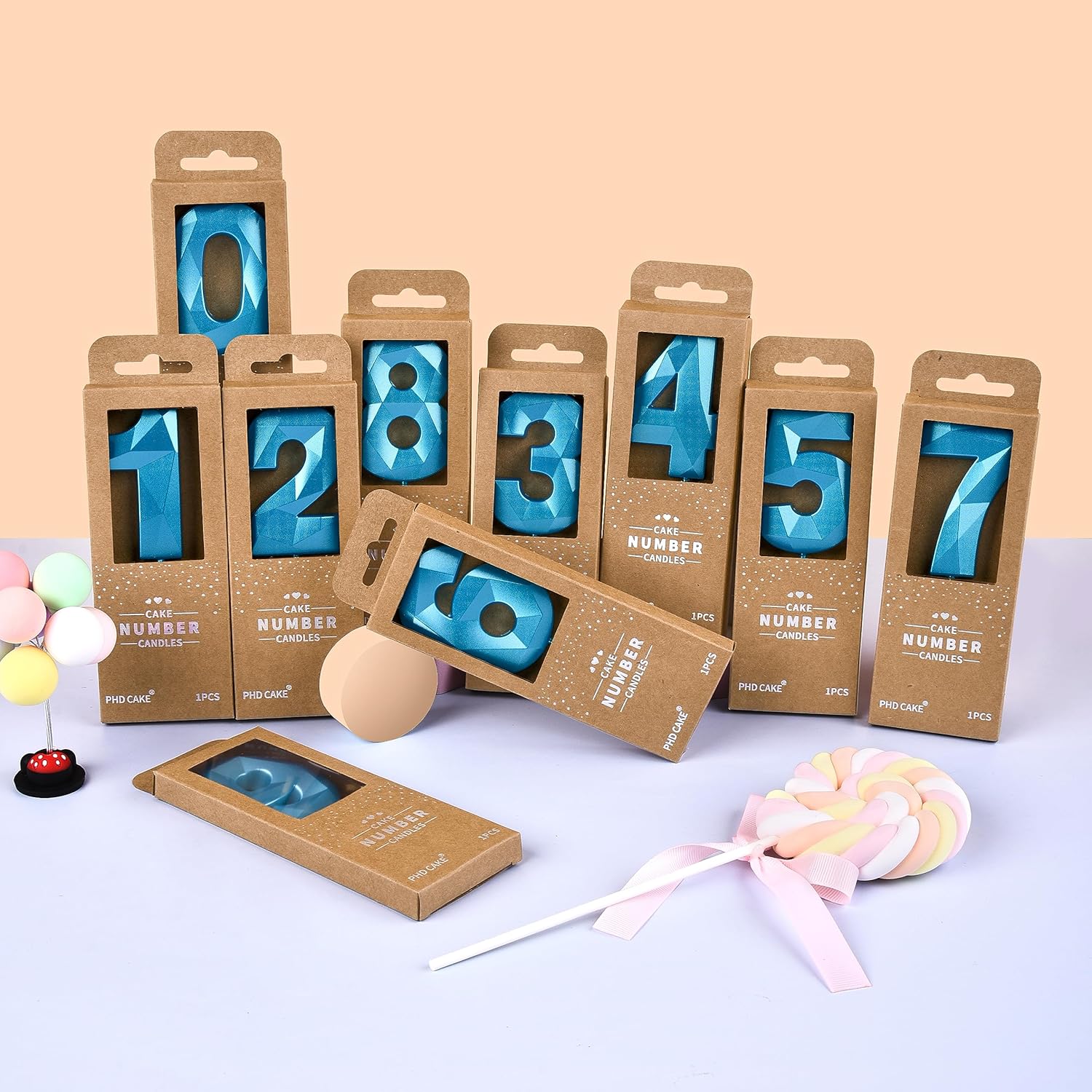 PHD CAKE 2.76 Inch Crystal Blue 3 Number Birthday Candles, Blue Number Candles, Cake Number Candles, Party Celebration