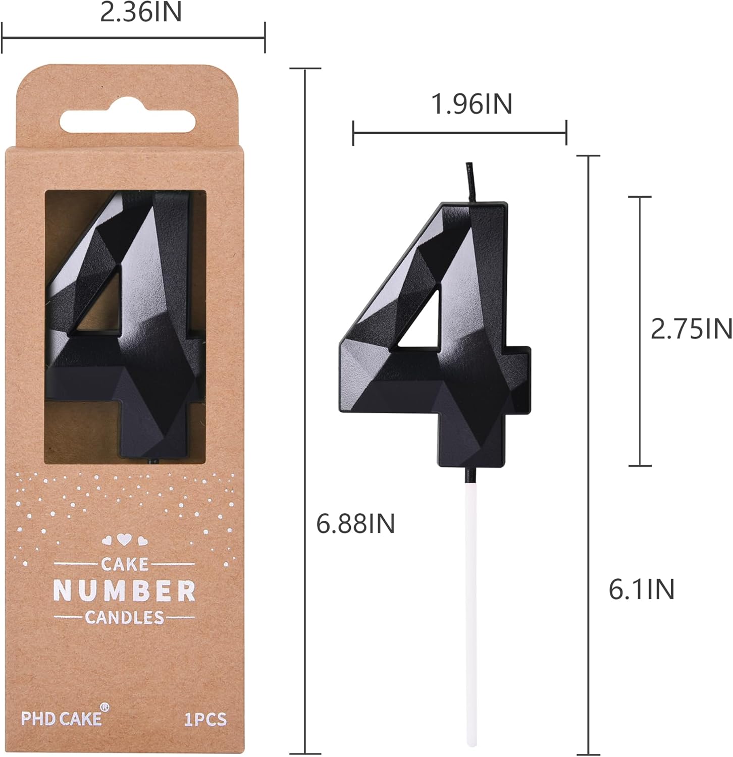- New: 2.76 Inch Large Crystal Black 4 Number Birthday Candle designed to make your cake and birthday a unique and truly inspiring event.