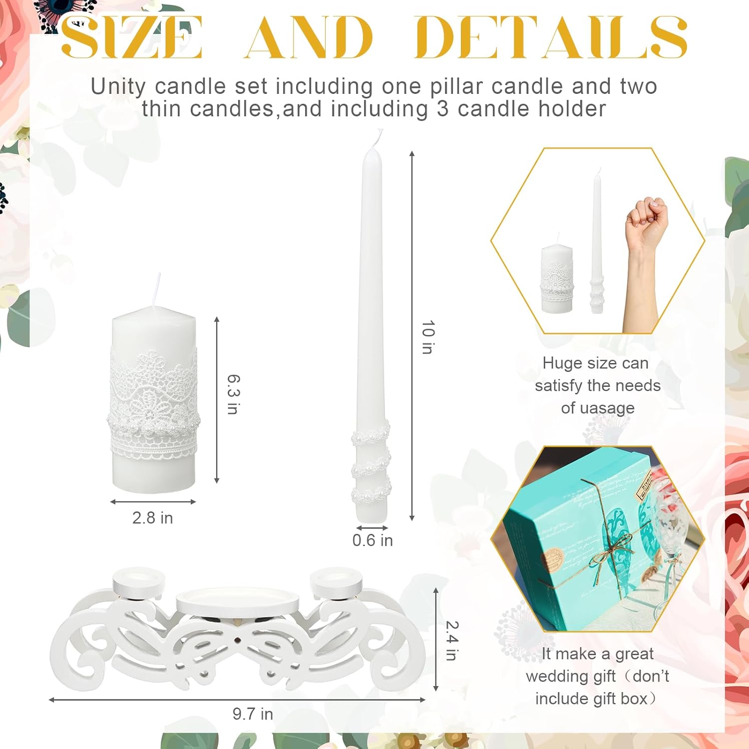 - Nice Gifts: the unity candles and holders are practical and decorative, will be an exquisite gift for your friends, family members, girlfriend, colleagues and other people you love, suitable for weddings, anniversaries, birthday, home decor, dinner parties, festivals, formal events, weddings, to add luster to these occasions