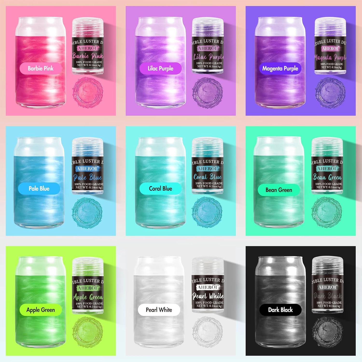 Aheroi Edible Glitter Set, 15 Colors Luster Dust Edible Set, Shimmering Glitter for Drinks Powder Glitter for Fondant, Cocktail Glitter for Cakes, Candy, Chocolate, Cookie(4g/0.14oz)