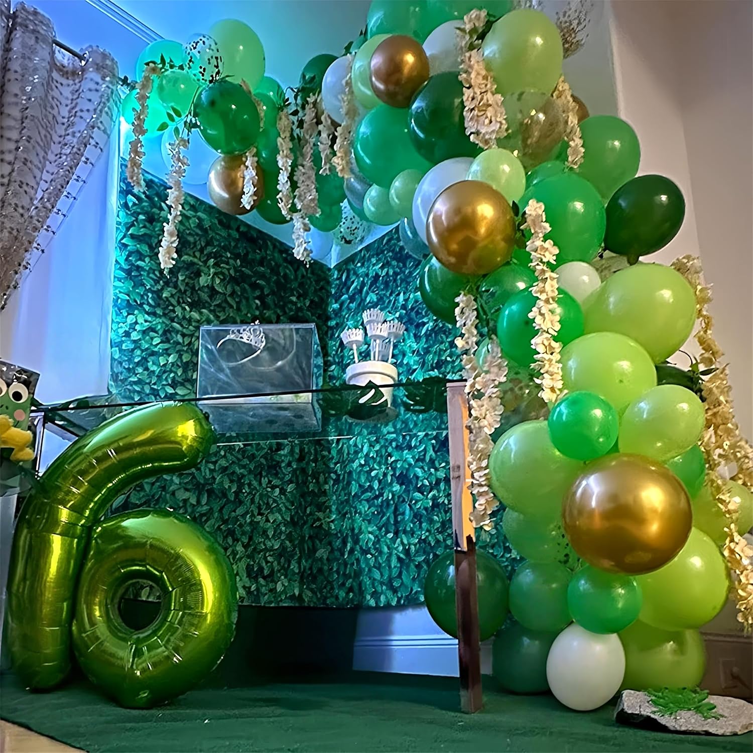 - š Green Gold Confetti Balloons - You will get 35 pieces 12 inch latex party balloons set, includes matte dark green 8pcs, pearl light green 7pcs, matte white 7pcs, metallic gold 8pcs, gold confetti 5pcs, come with 1pc gold balloon ribbon. Perfect for boys girls jungle dinosaur birthday baby shower graduation party decorations supplies.
