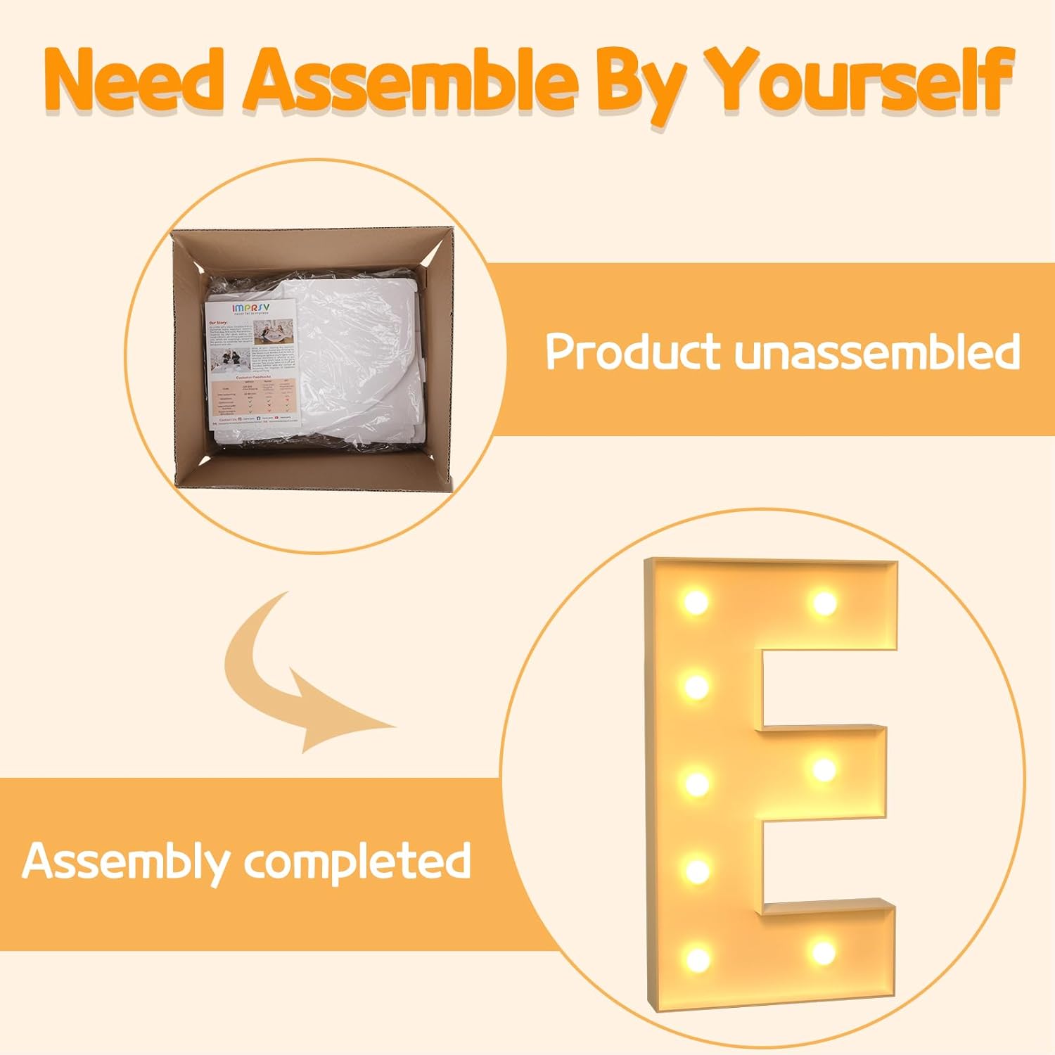 - Assembly Required: Our large marquee letters is made from foam board and easy to assemble with our splicing mode. Just follow the numbered instructions to align and insert the bottom plate, and reinforce it with a hot glue gun. Then, you're done!