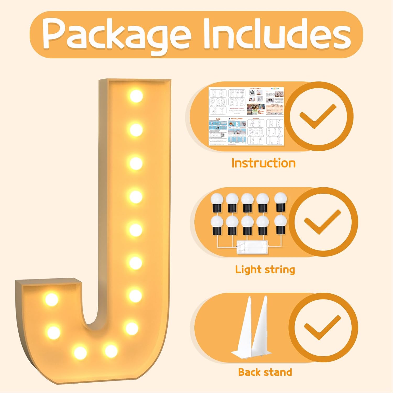 Marquee Letters 4 Feet Tall Large Light Up Letters J Happy Birthday Decorations Marry Me Engagement Party Decor Yellow Light Birthday Decorations Balloon Arch Kit Foam Sign J