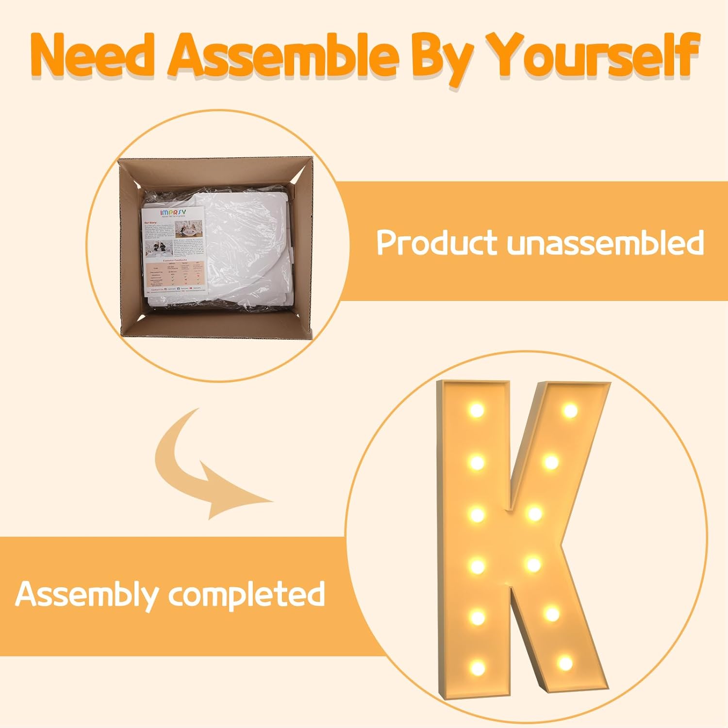 - Assembly Required: Our large marquee letters is made from foam board and easy to assemble with our splicing mode. Just follow the numbered instructions to align and insert the bottom plate, and reinforce it with a hot glue gun. Then, you're done!