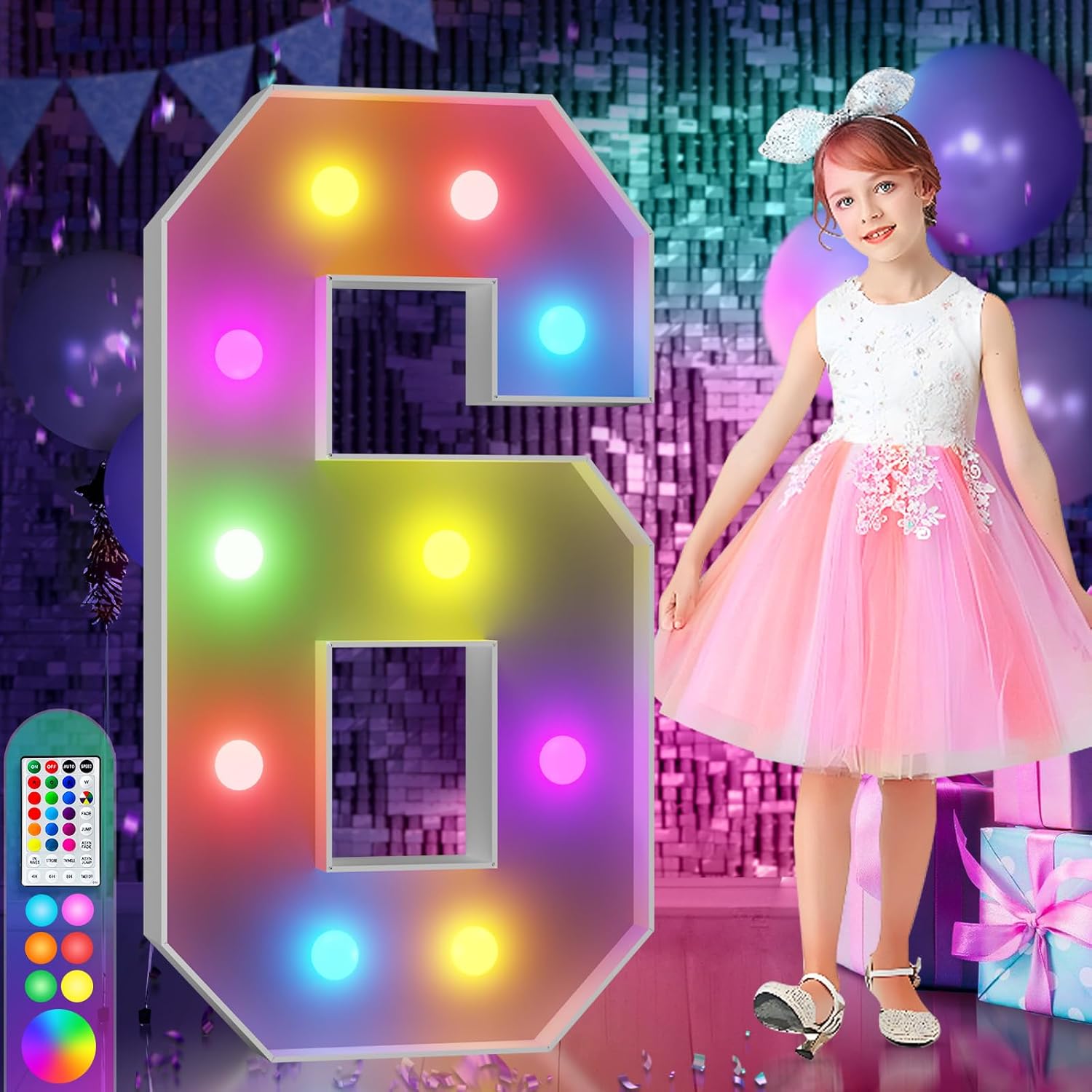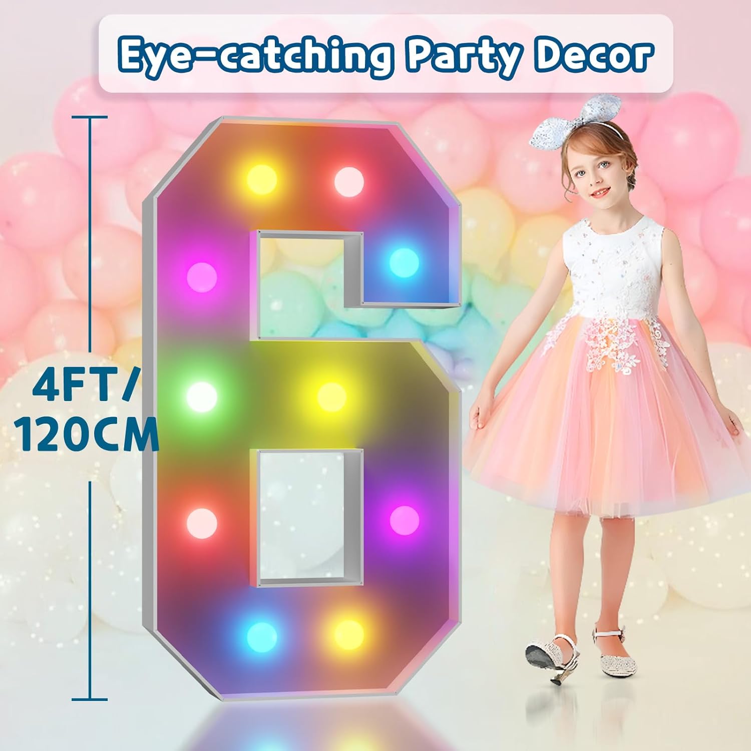 imprsv 4FT Colorful Marquee Numbers,18 Colors Number 6 with Remote, Light Up Numbers Sign for 60th Birthday Decorations Anniversary Party Decor, Pre-Cut Foam Board Kit, Mosaic Sign for Balloon