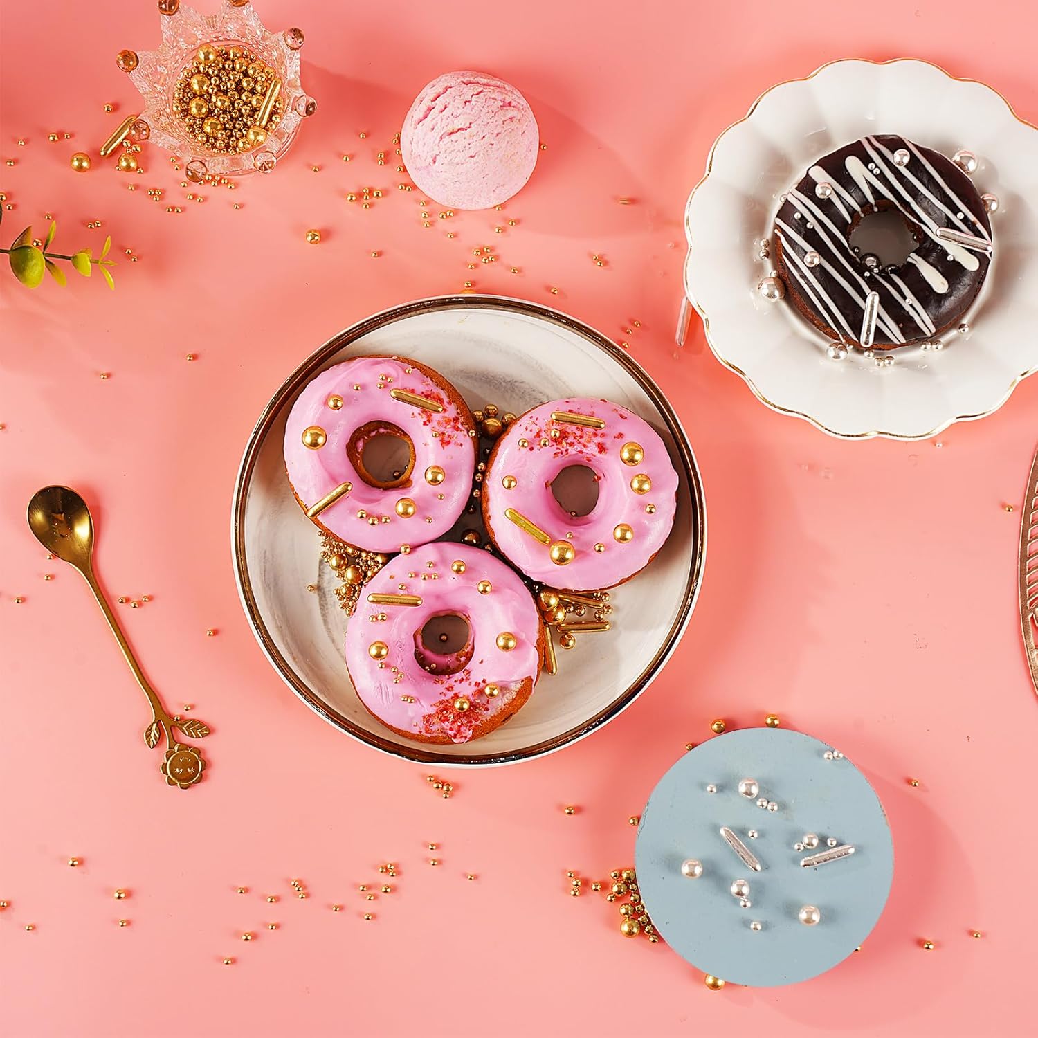 - 【Multi-Purpose】: Gold silver pearls candy decorations is widely used, it can be used for decoration of various foods, such as cakes, cookies, ice cream, cupcakes, donuts, etc. Sprinkles for cake decorating are suitable for weddings, birthdays, Halloween, Christmas and other theme parties, it can make your baking full of festive atmosphere!