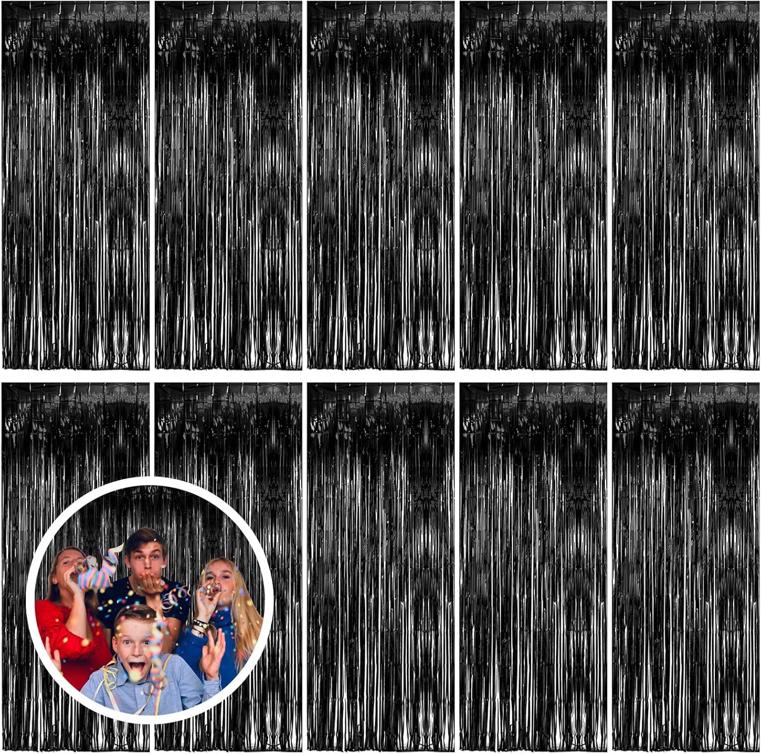 - Party Streamers Backdrop: 10Packs/Set, each pack curtains size is 3.28 ft x 6.56 ft, enough length foil fringe backdrops are perfect for the door or wall to create an impressive decoration for parties, events, and photo booths. Create your own party decorations now!