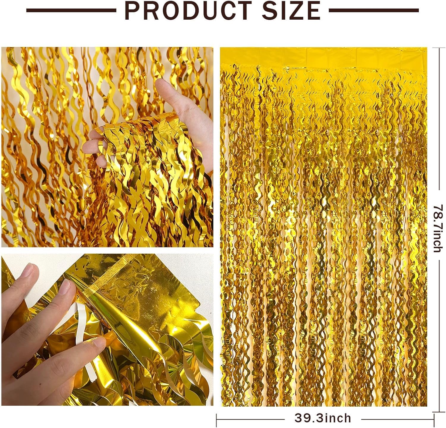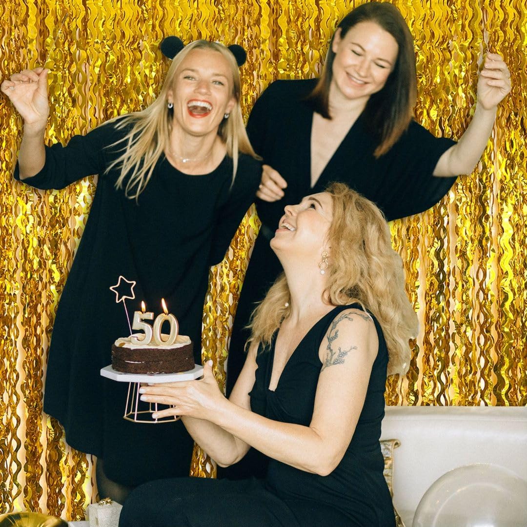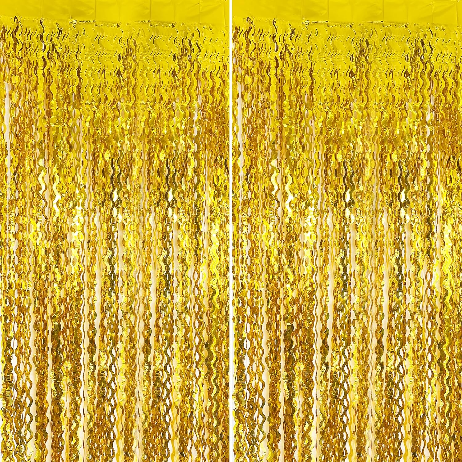 - Gold Photo Backdrop - The wavy foil fringe curtain with sparkle, a stunning decorative piece that will add a touch of glamour and elegance to your party decorations.